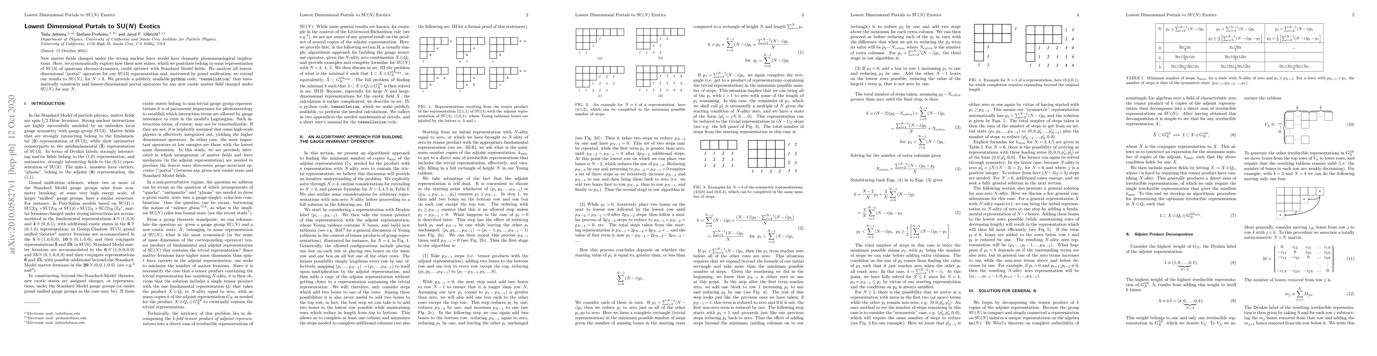 New matter fields charged under the strong nuclear force would have dramatic phenomenological implications. Here, we systematically explore how these new states, which we postulate belong to some representation of SU(3) of quantum chromo-dynamics, could interact with Standard Model fields: We analyze all lowest-dimensional "portal" operators for any SU(3) representation and, motivated by grand unification, we extend our results to SU($N$), for $N>3$. We provide a publicly available python code, "tessellation", that automatically constructs said lowest-dimensional portal operators for any new exotic matter field charged under SU($N$) for any $N$.