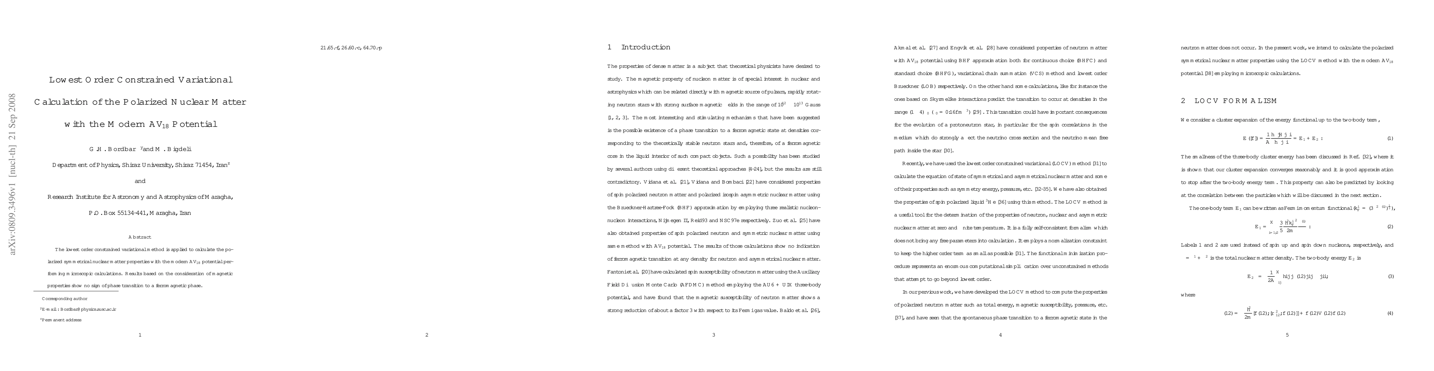 The lowest order constrained variational method is applied to calculate the polarized symmetrical nuclear matter properties with the modern $AV_{18}$ potential performing microscopic calculations. Results based on the consideration of magnetic properties show no sign of phase transition to a ferromagnetic phase.