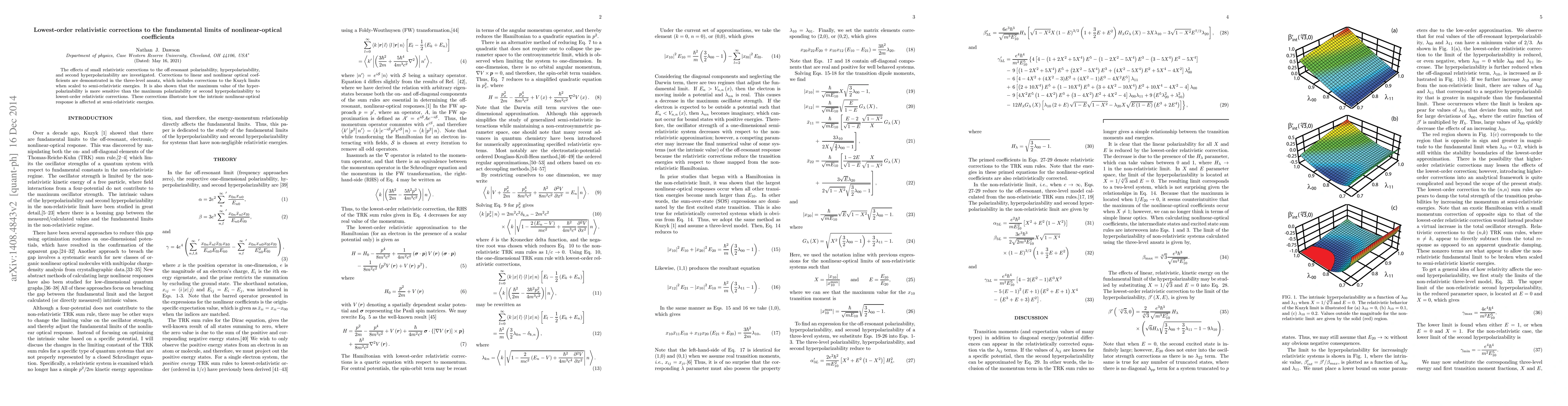 This paper investigates the lowest-order relativistic corrections to the fundamental limits of nonlinear-optical coefficients, demonstrating their impact on linear and nonlinear optical responses, particularly highlighting the heightened sensitivity of hyperpolarizability to such corrections.