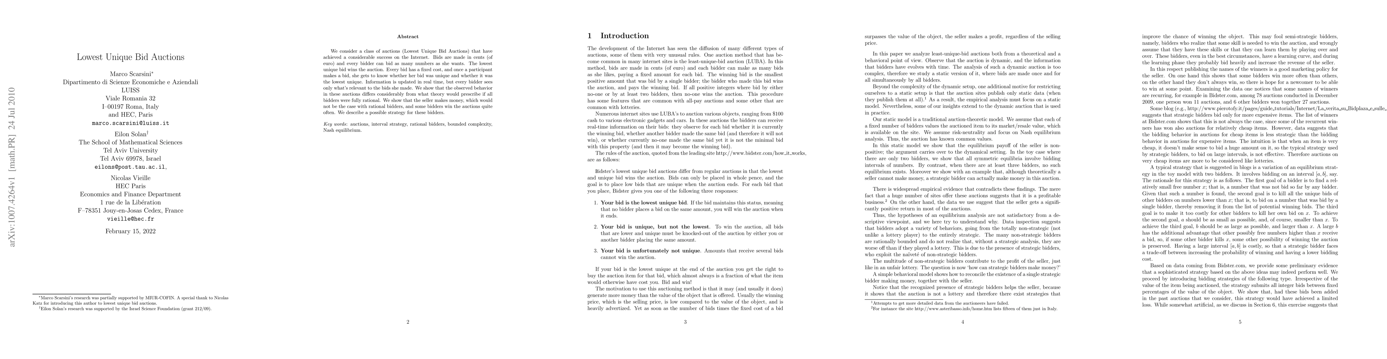 We consider a class of auctions (Lowest Unique Bid Auctions) that have achieved a considerable success on the Internet. Bids are made in cents (of euro) and every bidder can bid as many numbers as she wants. The lowest unique bid wins the auction. Every bid has a fixed cost, and once a participant makes a bid, she gets to know whether her bid was unique and whether it was the lowest unique. Information is updated in real time, but every bidder sees only what's relevant to the bids she made. We show that the observed behavior in these auctions differs considerably from what theory would prescribe if all bidders were fully rational. We show that the seller makes money, which would not be the case with rational bidders, and some bidders win the auctions quite often. We describe a possible strategy for these bidders.
