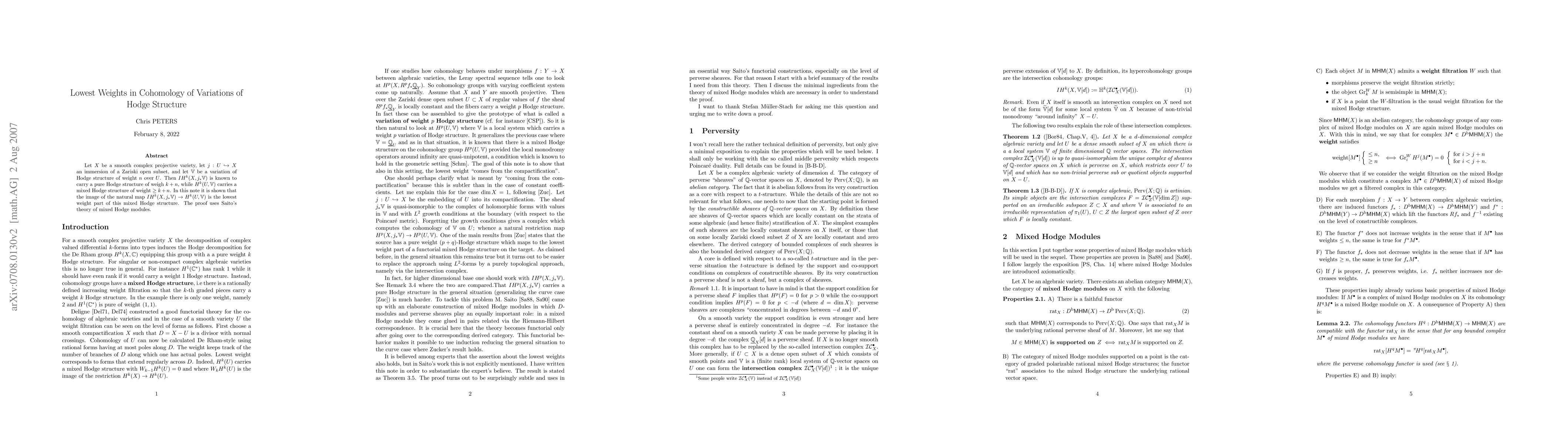Let X be a smooth complex projective variety, let $j:U\into X$ an immersion of a Zariski open subset, and let V be a variation of Hodge structure of weight n over U. Then IH^k(X, j_*V) is known to carry a pure Hodge structure of weight k+n, while H^k(U,V) carries a mixed Hodge structure of weight $\ge k+n$. In this note it is shown that the image of the natural map $IH^k(X,j_*V) \to H^k(U,V)$ is the lowest weight part of this mixed Hodge structure. The proof uses Saito's theory of mixed Hodge modules.