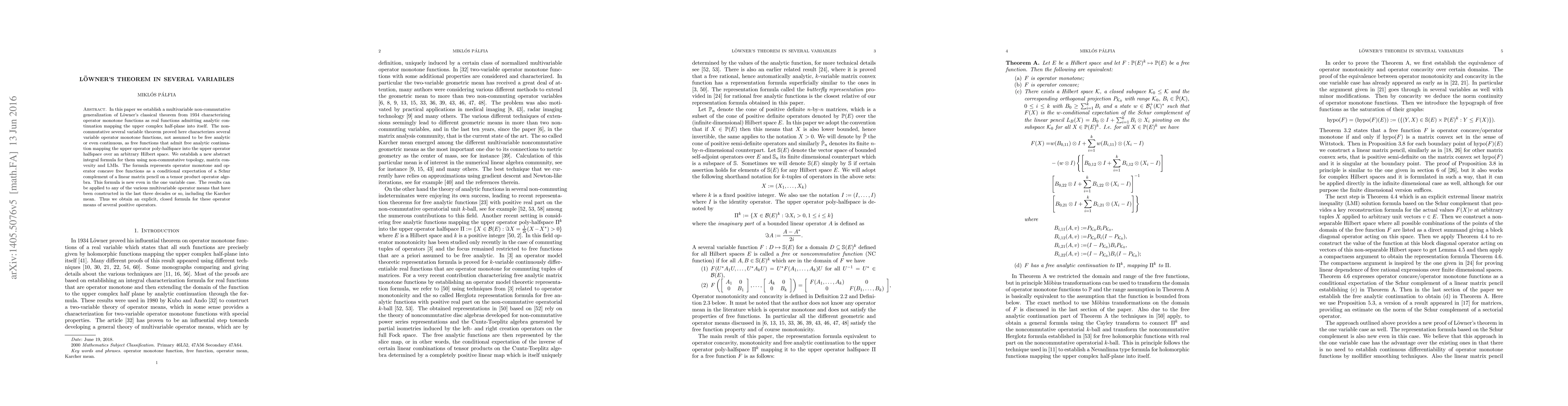 This paper generalizes Löwner's classical theorem to several non-commutative variables, characterizing operator monotone functions via free analytic continuation mappings. It introduces a new abstract integral formula using non-commutative topology and LMIs, applicable to various multivariable operator means.