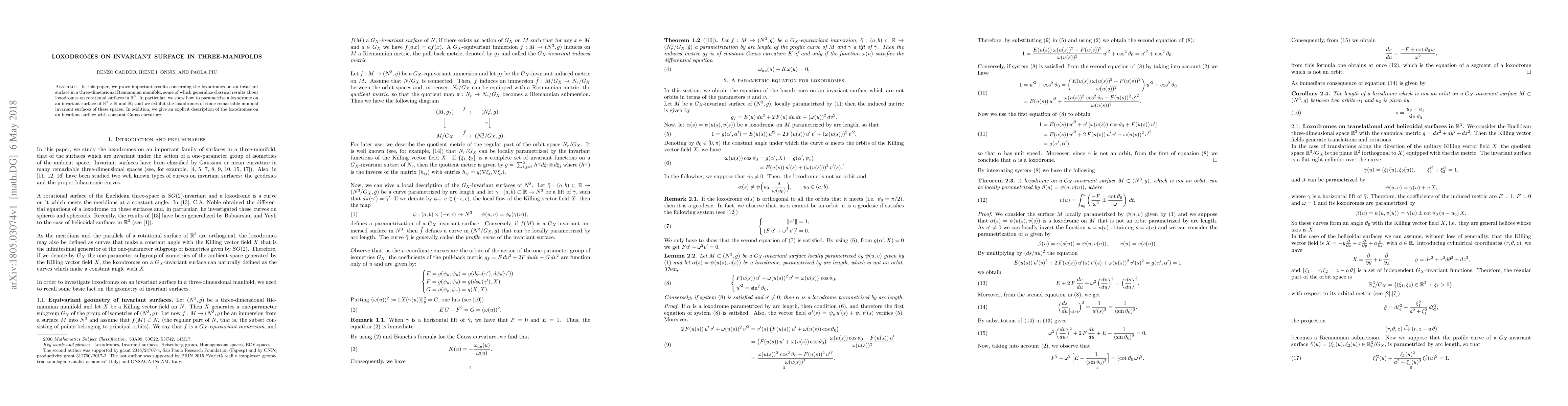 In this paper, we prove important results concerning the loxodromes on an invariant surface in a three-dimensional Riemannian manifold, some of which generalize classical results about loxodromes on rotational surfaces in $\mathbb{R}^3$. In particular, we show how to parametrize a loxodrome on an invariant surface of $\mathbb{H}^2\times \mathbb{R}$ and $\mathbb{H}_3$ and we exhibit the loxodromes of some remarkable minimal invariant surfaces of these spaces. In addition, we give an explicit description of the loxodromes on an invariant surface with constant Gauss curvature.