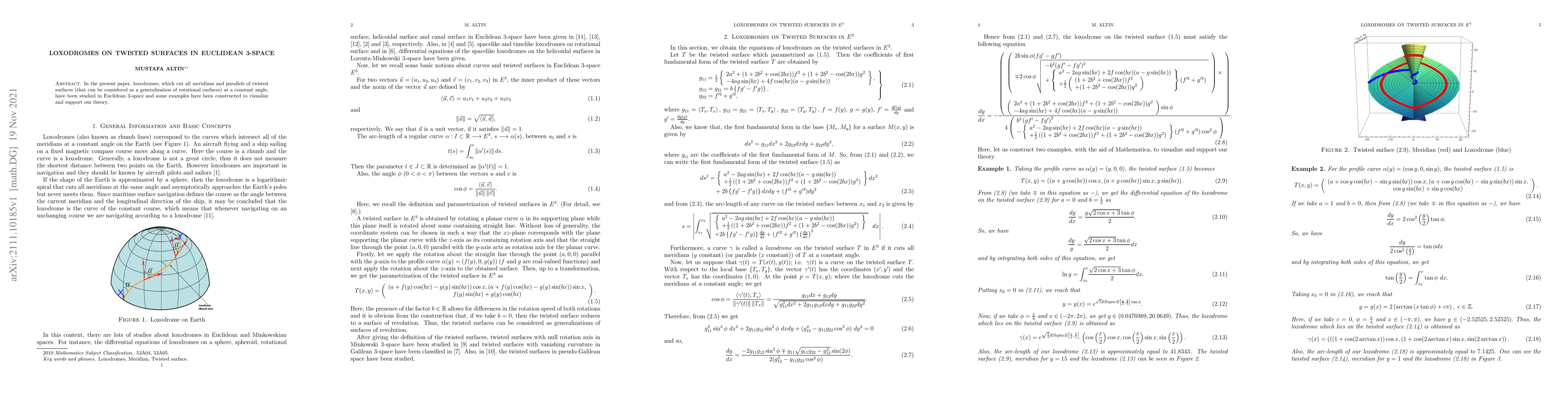 This paper investigates loxodromes on twisted surfaces in 3D Euclidean space, demonstrating that they intersect all meridians and parallels at a constant angle, and provides examples to support the theoretical findings.