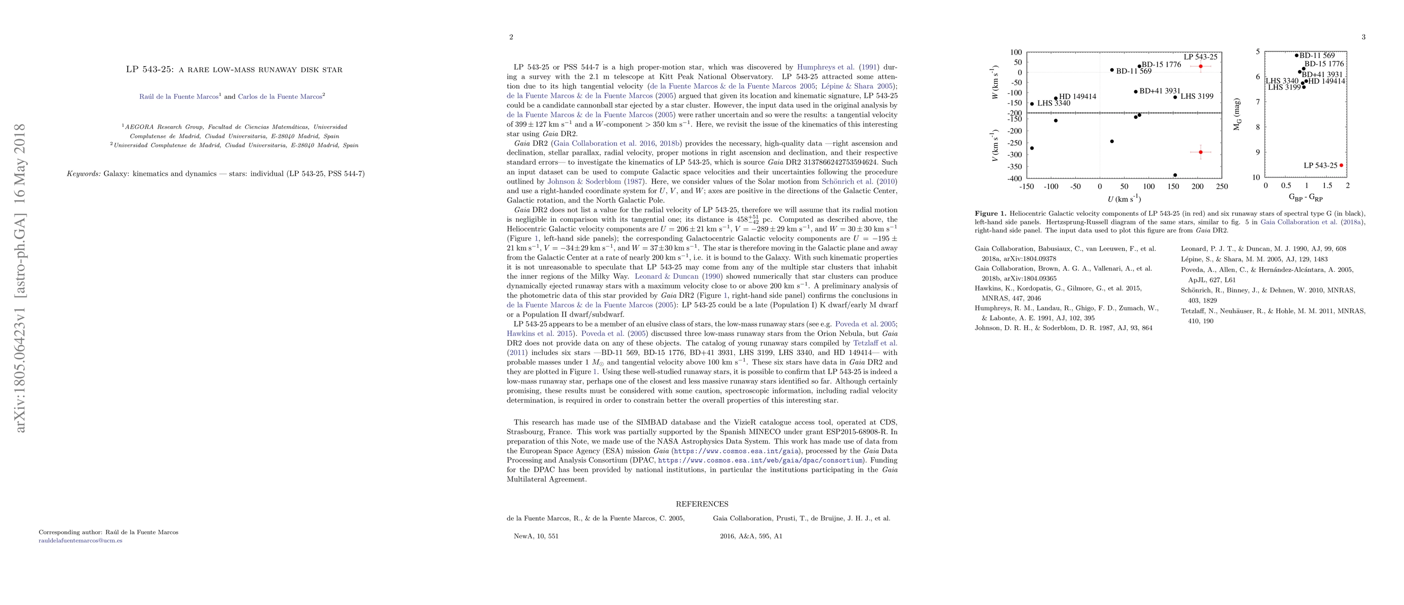 LP 543-25 or PSS 544-7 is a high proper-motion star located 458 pc from the Sun in the constellation of Canis Minor; it has been argued that it could be a candidate cannonball star ejected by a star cluster. Here, we revisit the issue of the kinematics of this interesting star using Gaia DR2. The heliocentric Galactic velocity components are (U, V, W) = (206, -289, 30) km/s; the corresponding Galactocentric Galactic velocity components show that LP 543-25 is moving in the Galactic plane and away from the Galactic Center at a rate of nearly 200 km/s, which is compatible with an origin in one of the multiple star clusters that inhabit the inner regions of the Milky Way. LP 543-25 appears to be a member of an elusive class of stars, the low-mass runaway stars. It is perhaps one of the closest and less massive runaway stars identified so far.