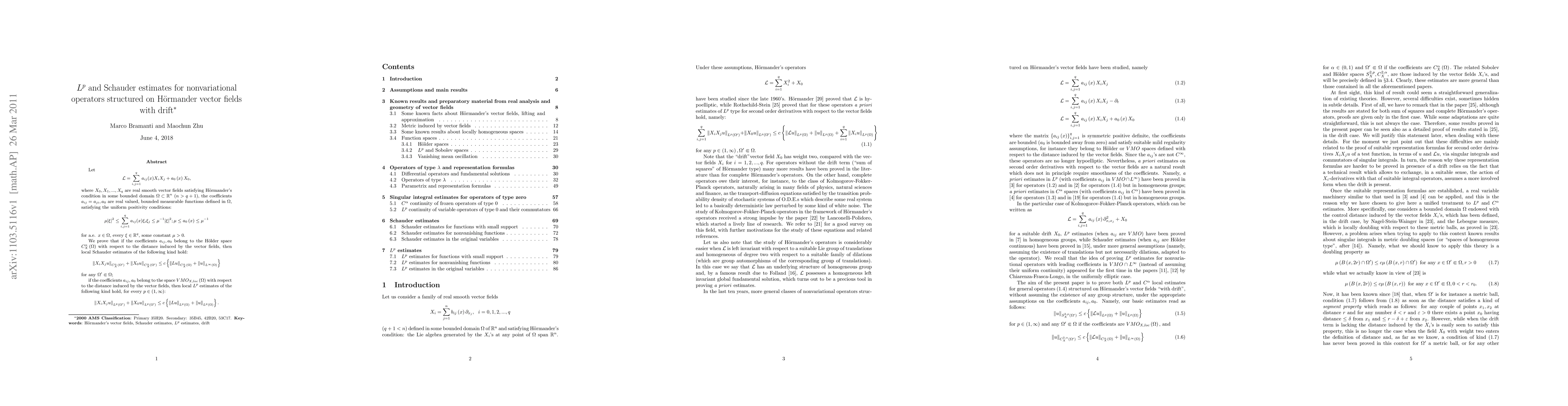 This paper proves local Schauder and L^p estimates for linear second-order nonvariational partial differential operators structured on Hörmander vector fields with a drift term. The estimates hold under conditions on the continuity and boundedness of the coefficients.