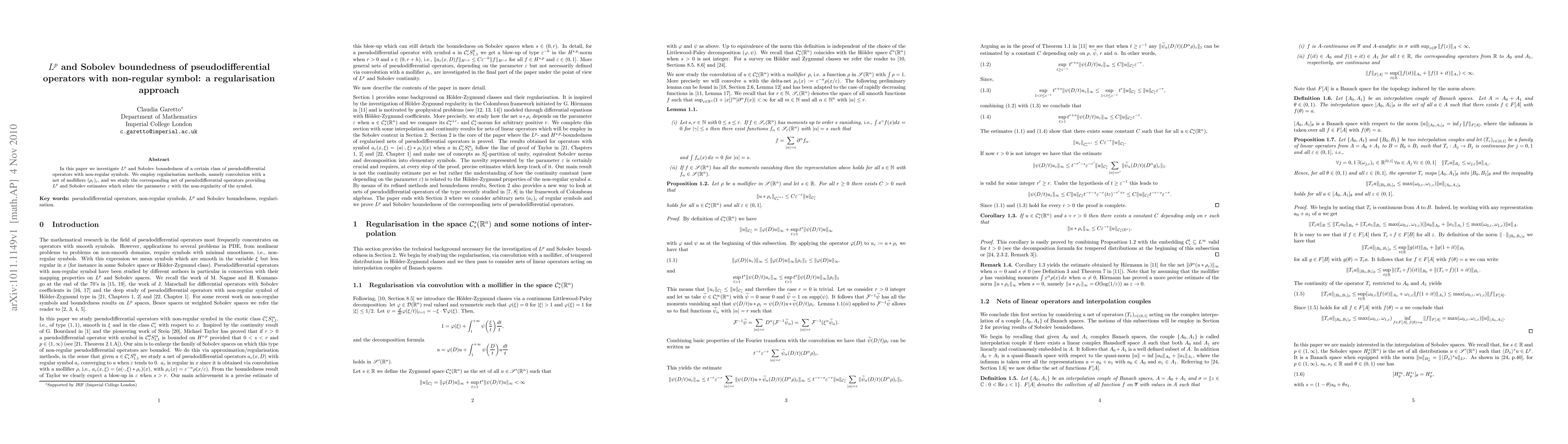 This paper examines $L^p$ and Sobolev boundedness for pseudodifferential operators with non-regular symbols, using regularization through convolution with a sequence of mollifiers $(\rho_\eps)_\eps$ to derive corresponding estimates linking the mollifier parameter $\eps$ with the symbol's non-regularity.