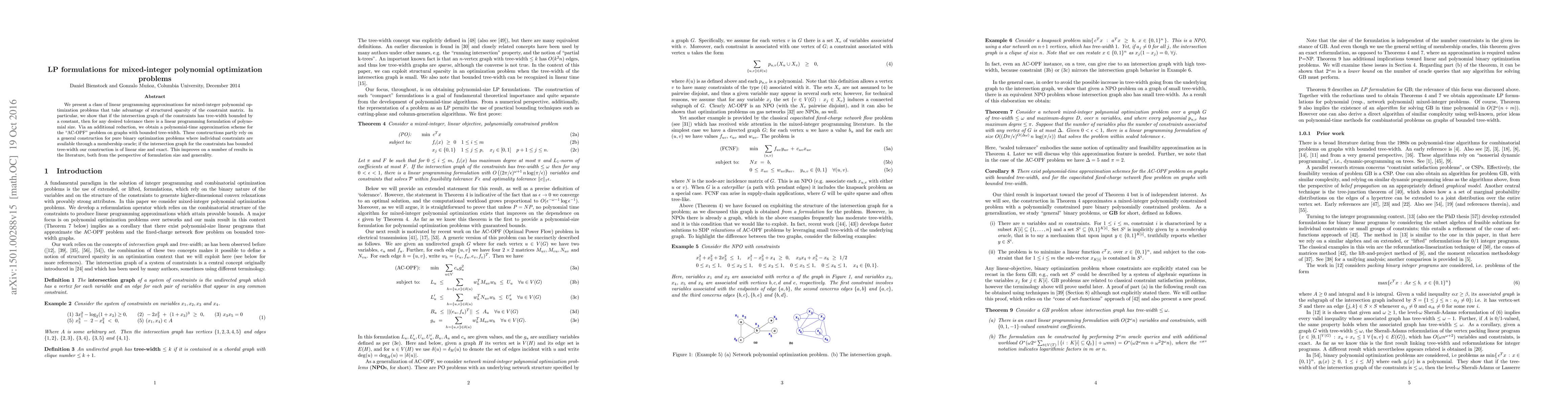We present a class of linear programming approximations for constrained optimization problems. In the case of mixed-integer polynomial optimization problems, if the intersection graph of the constraints has bounded tree-width our construction yields a class of linear size formulations that attain any desired tolerance. As a result, we obtain an approximation scheme for the "AC-OPF" problem on graphs with bounded tree-width. We also describe a more general construction for pure binary optimization problems where individual constraints are available through a membership oracle; if the intersection graph for the constraints has bounded tree-width our construction is of linear size and exact. This improves on a number of results in the literature, both from the perspective of formulation size and generality.