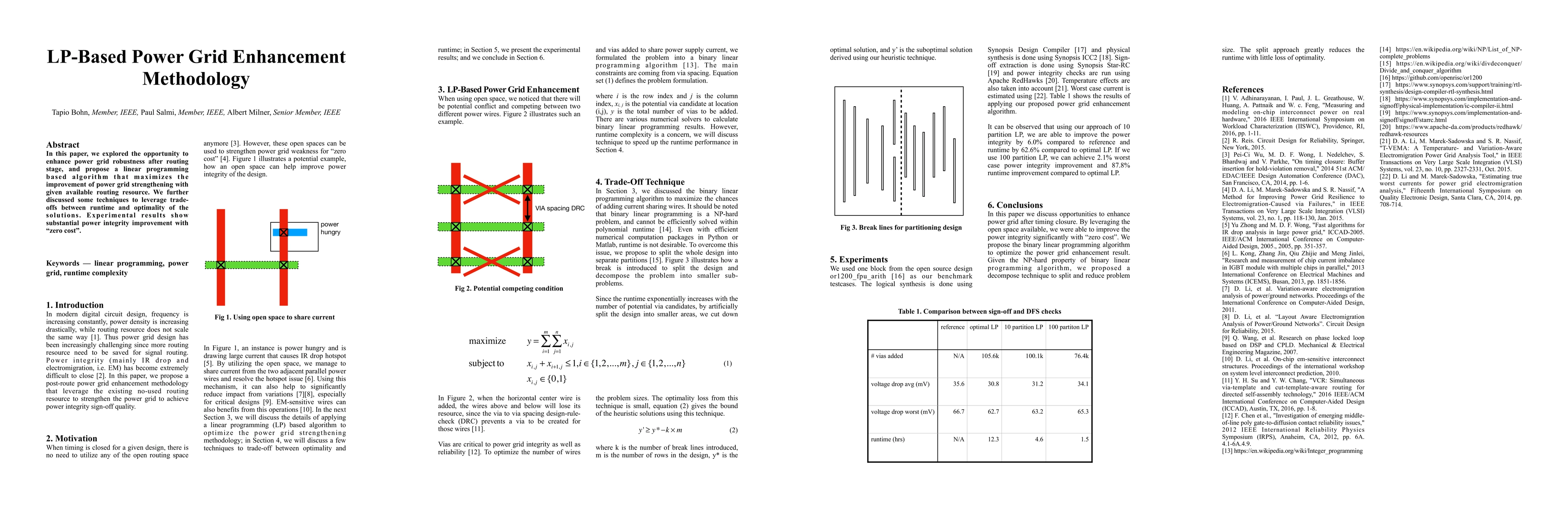 Researchers propose a linear programming-based algorithm to enhance power grid robustness with available routing resources, achieving substantial power integrity improvement at no additional cost.