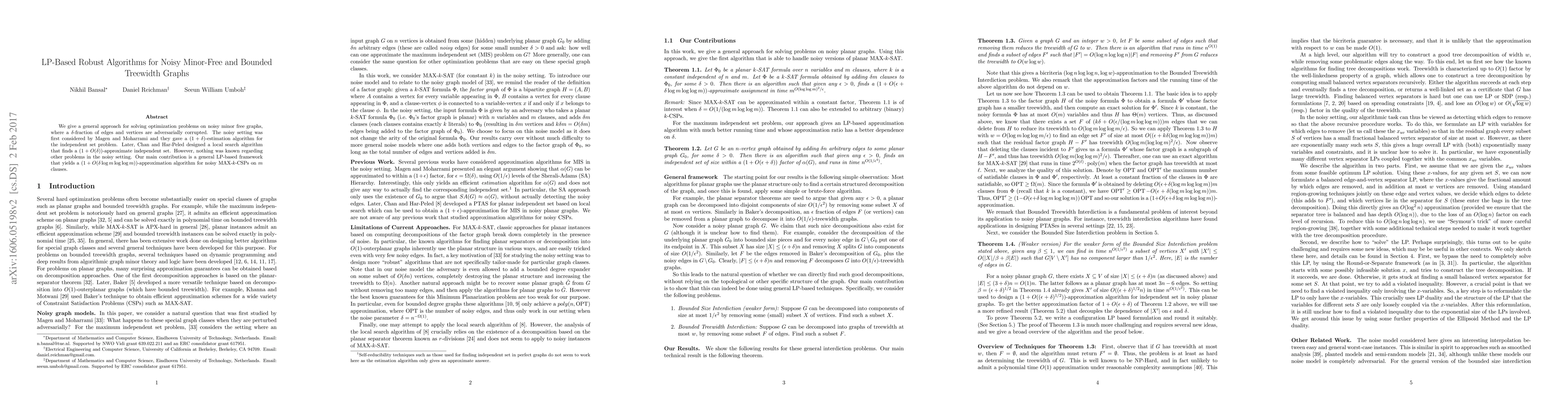 We give a general approach for solving optimization problems on noisy minor free graphs, where a \delta-fraction of edges and vertices are adversarially corrupted. The noisy setting was first considered by Magen and Moharrami and they gave a (1 + \delta)-estimation algorithm for the independent set problem. Later, Chan and Har-Peled designed a local search algorithm that finds a (1 + O(\delta))-approximate independent set. However, nothing was known regarding other problems in the noisy setting. Our main contribution is a general LP-based framework that yields a (1 + O(\delta log m log log m))-approximation algorithm for noisy MAX-k-CSPs on m clauses.