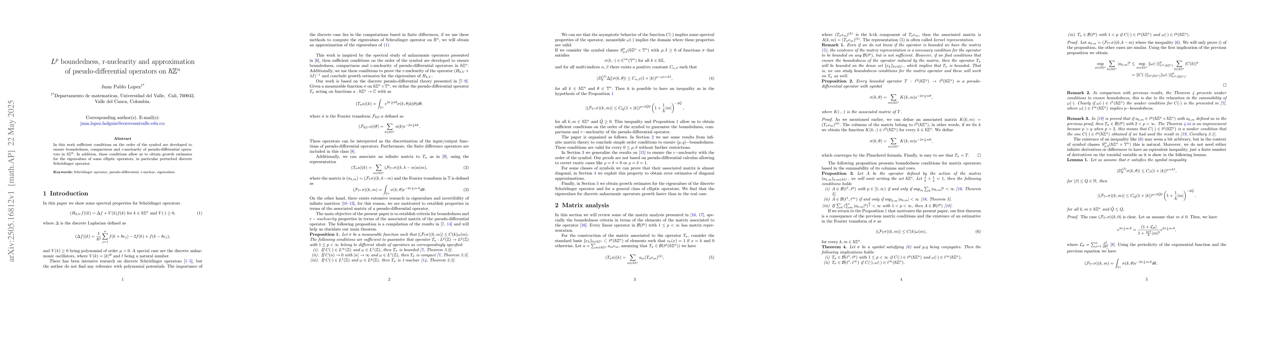 The research develops sufficient conditions on the order of the symbol for pseudo-differential operators in $\hbar\mathbb{Z}^n$.