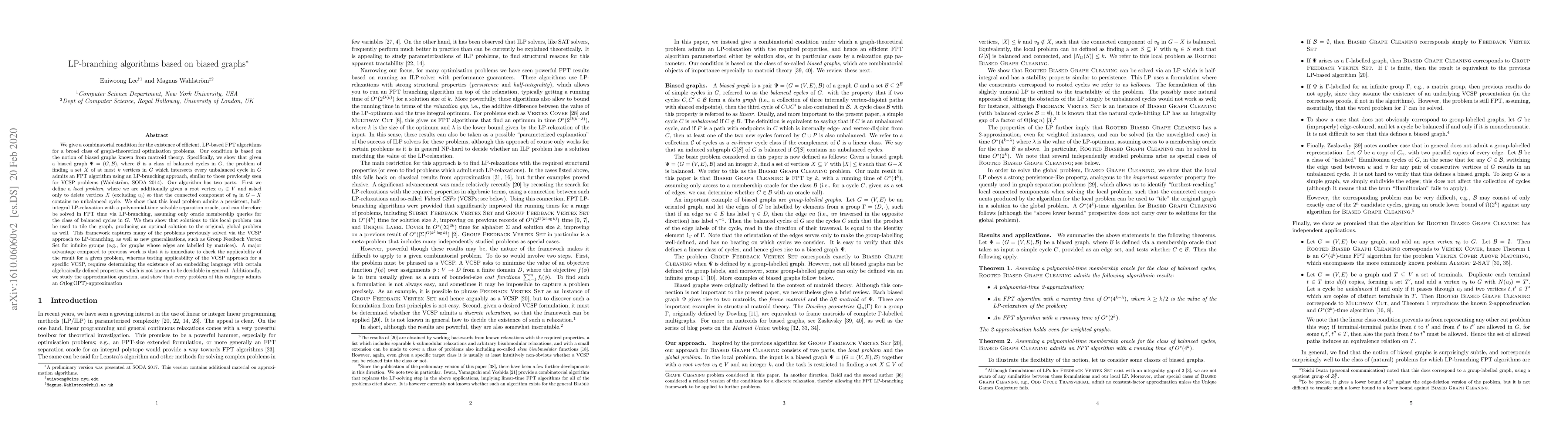 This paper presents an LP-based fixed-parameter tractable (FPT) algorithm for a broad class of graph-theoretical optimization problems using the concept of biased graphs. It provides a straightforward condition for problem applicability, contrasting with the more complex VCSP approach.