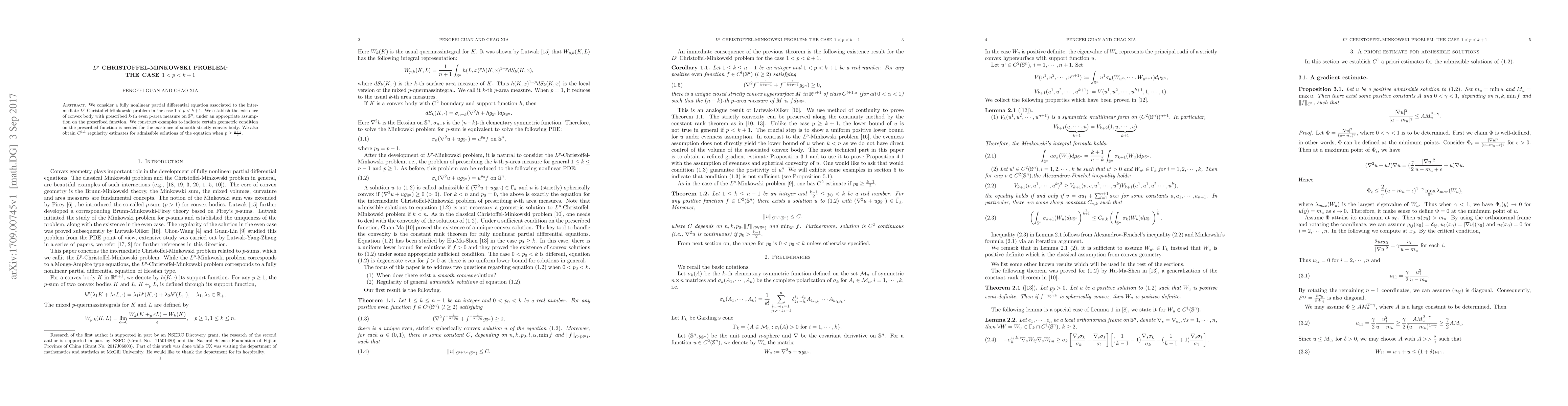We consider a fully nonlinear partial differential equation associated to the intermediate $L^p$ Christoffel-Minkowski problem in the case $1