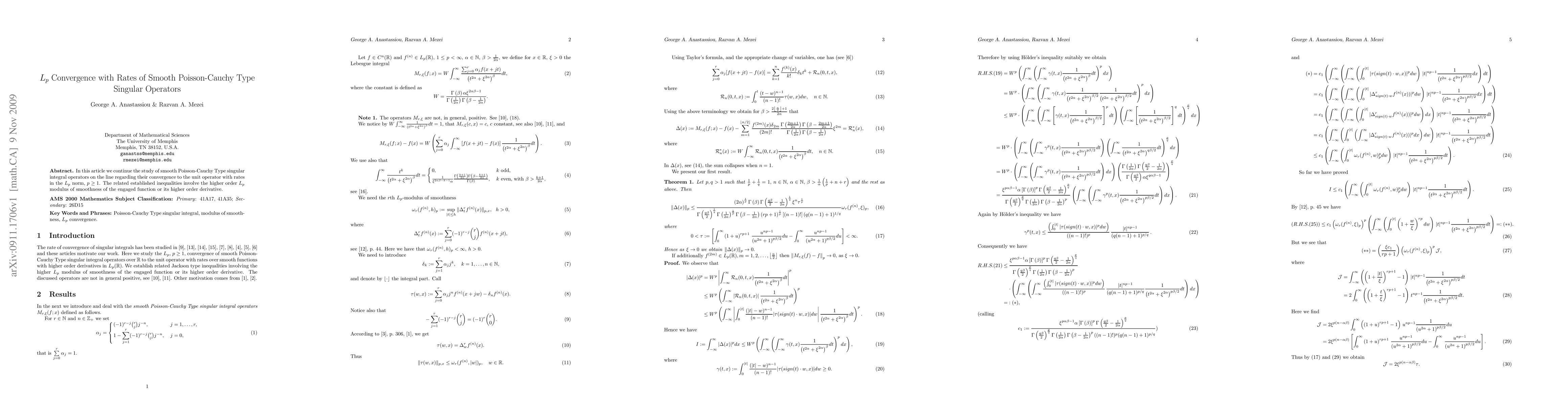 In this article we continue the study of smooth Poisson-Cauchy Type singular integral operators on the line regarding their convergence to the unit operator with rates in the Lp norm, p greater equal one. The related established inequalities involve the higher order Lp modulus of smoothness of the engaged function or its higher order derivative.