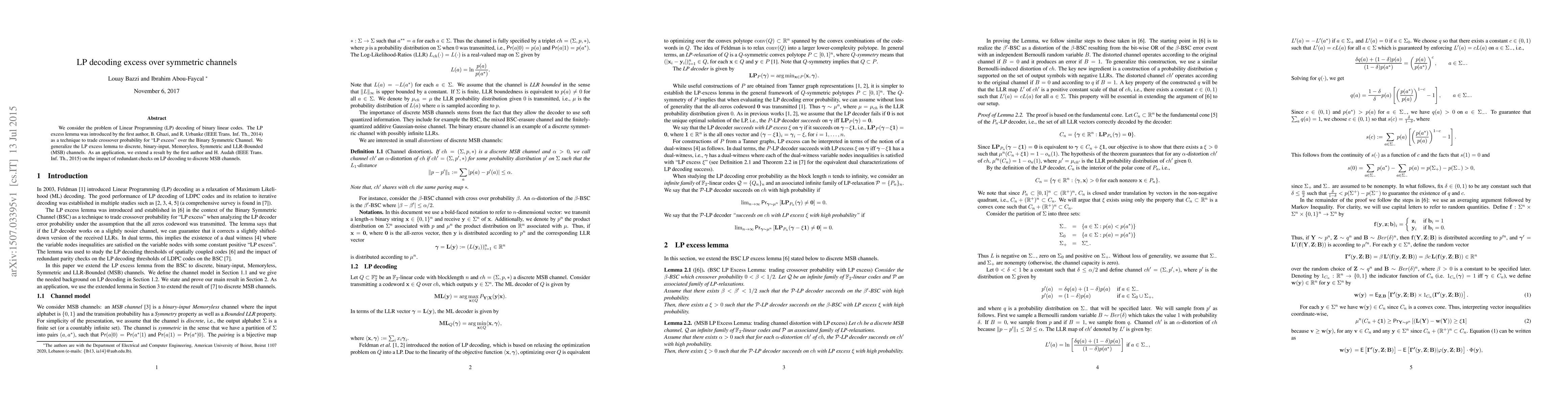 We consider the problem of Linear Programming (LP) decoding of binary linear codes. The LP excess lemma was introduced by the first author, B. Ghazi, and R. Urbanke (IEEE Trans. Inf. Th., 2014) as a technique to trade crossover probability for "LP excess" over the Binary Symmetric Channel. We generalize the LP excess lemma to discrete, binary-input, Memoryless, Symmetric and LLR-Bounded (MSB) channels. As an application, we extend a result by the first author and H. Audah (IEEE Trans. Inf. Th., 2015) on the impact of redundant checks on LP decoding to discrete MSB channels.