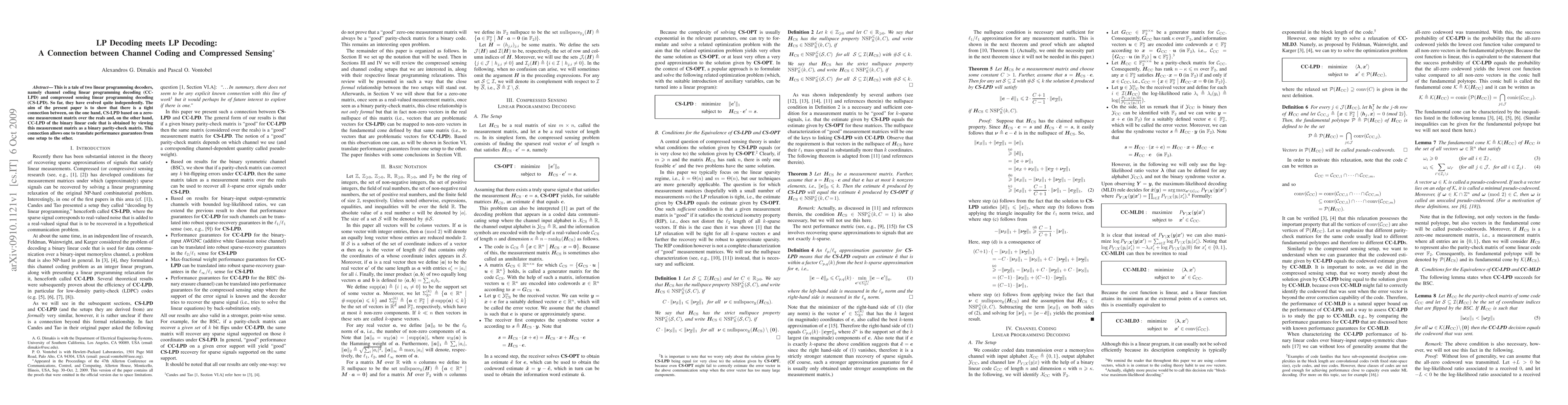 Research shows a connection between channel coding and compressed sensing linear programming decoders, enabling performance guarantees to be translated between the two fields. This discovery allows for more efficient use of resources in both applications.