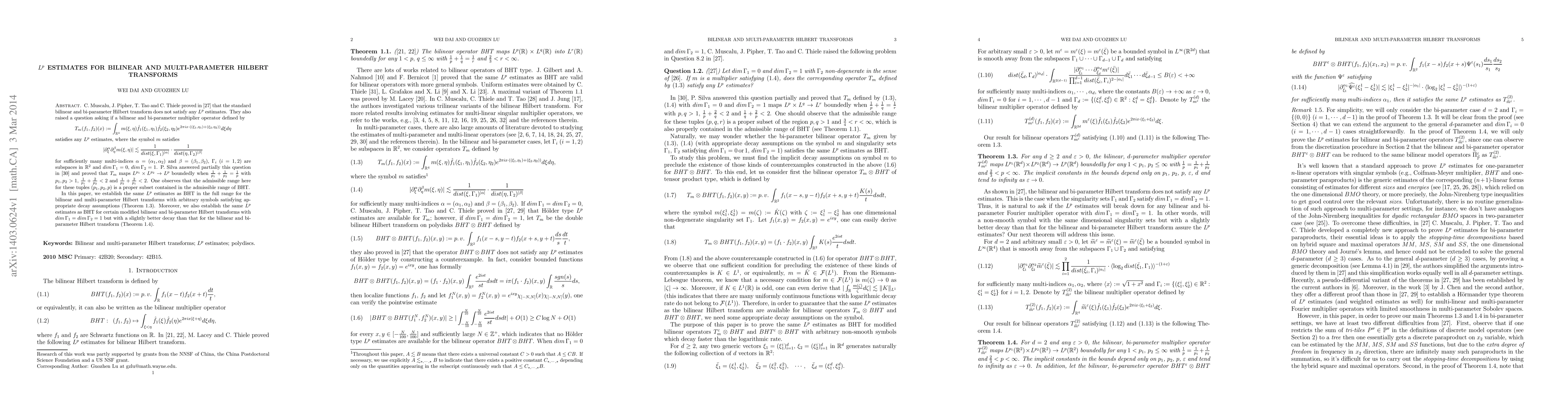 This paper proves $L^{p}$ estimates for bilinear and multi-parameter Hilbert transforms, showing that they satisfy the same estimates as the standard bilinear Hilbert transform under appropriate decay conditions. It also establishes slightly improved estimates for modified versions with higher dimensional subspaces.