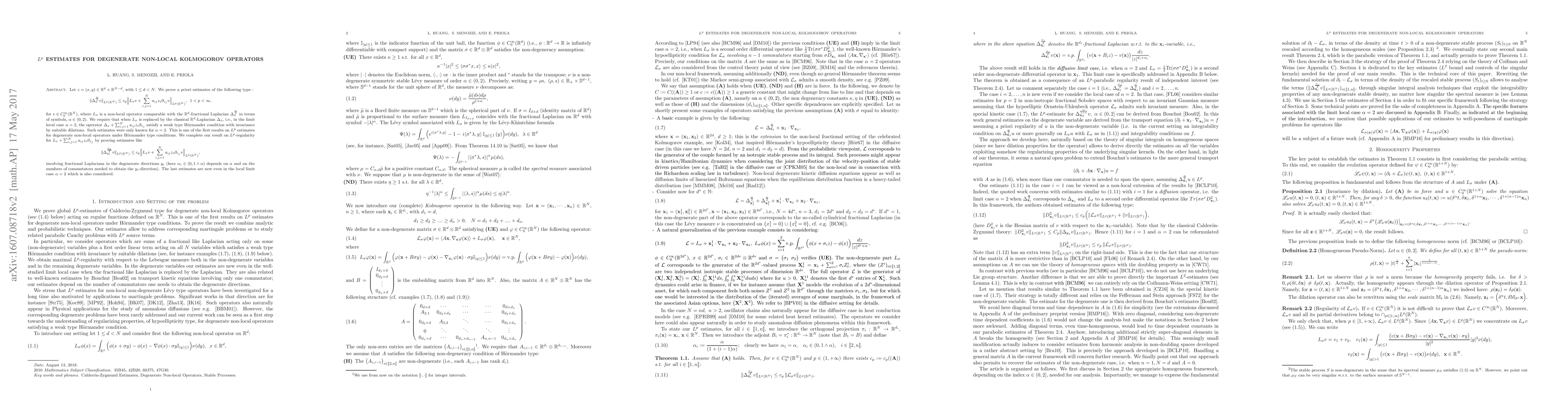 This paper proves $L^p$ estimates for degenerate non-local Kolmogorov operators, extending known results from the local case ($\alpha = 2$) to non-local operators with $0 < \alpha < 2$. It establishes new estimates involving fractional Laplacians in the degenerate directions, even for the local limit case.