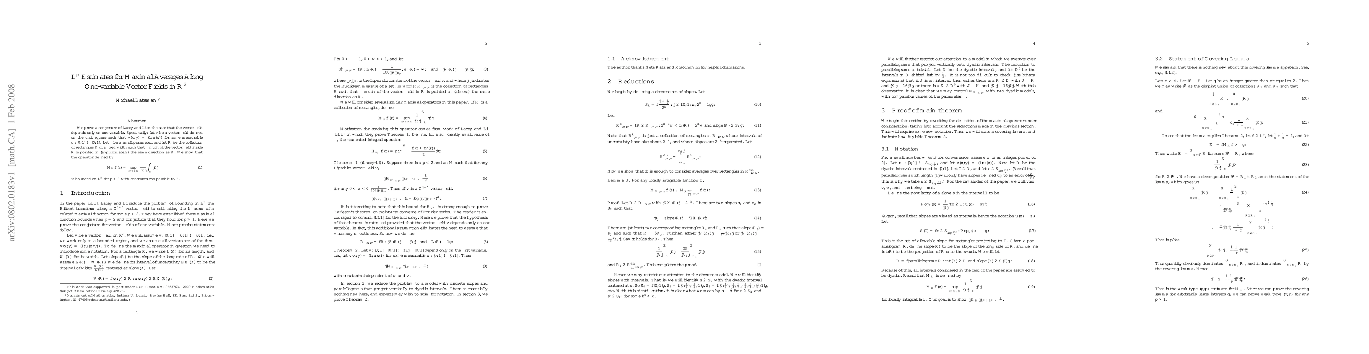Researchers prove a conjecture about averaging vector fields in R^2, showing that a specific type of operator is bounded on L^p for p>1 with constants comparable to (delta)^(-1), where delta is a small parameter.