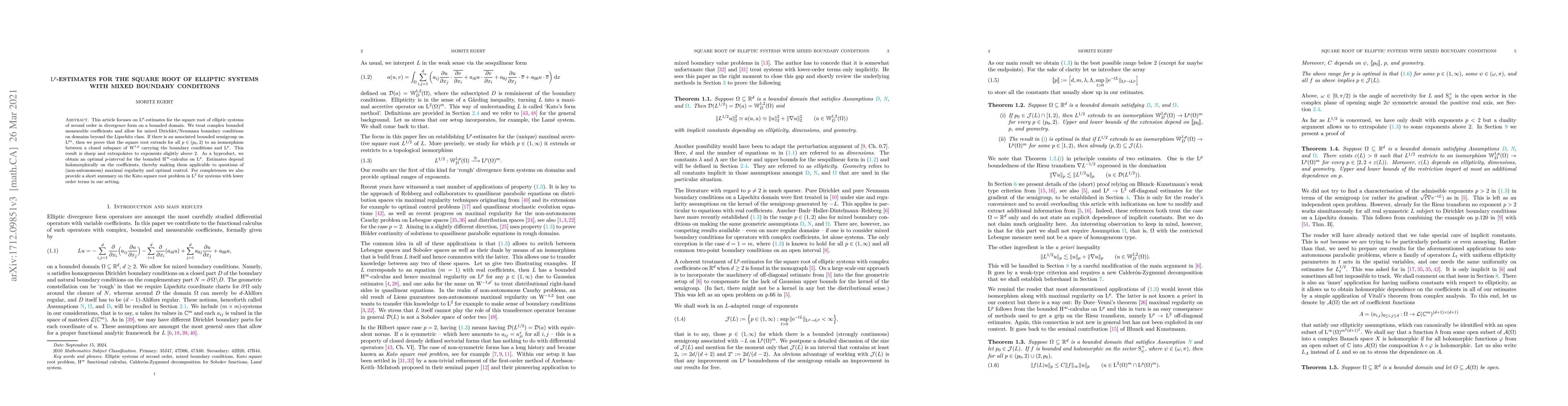 This paper establishes Lp-estimates for the square root of elliptic systems with mixed boundary conditions, proving its extension as an isomorphism for certain p-values. The results are sharp and applicable to non-autonomous maximal regularity and optimal control, with estimates depending holomorphically on coefficients.
