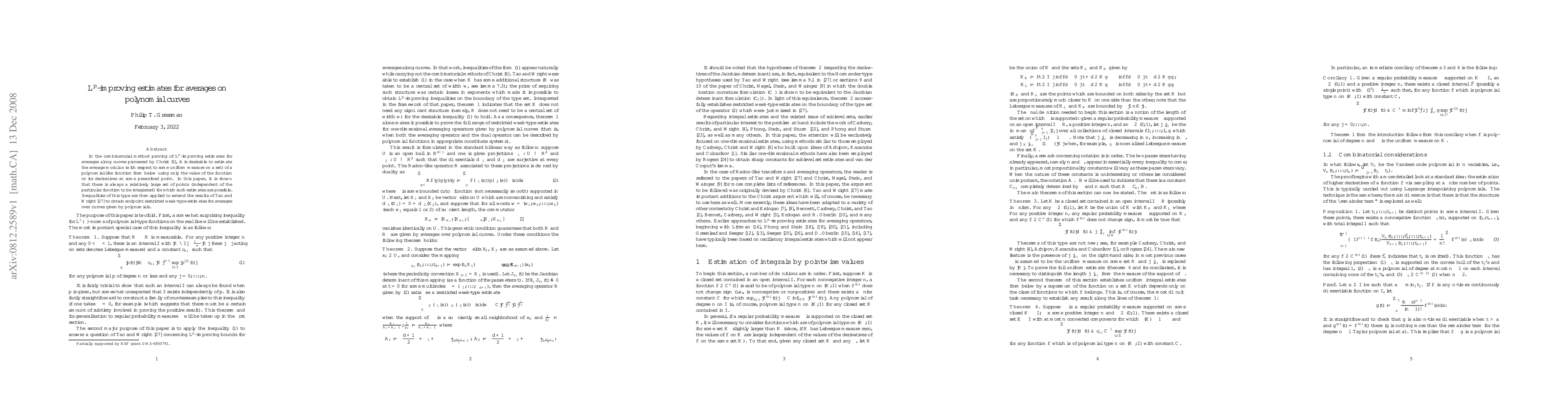 In the combinatorial method proving of $L^p$-improving estimates for averages along curves pioneered by Christ (IMRN, 1998), it is desirable to estimate the average modulus (with respect to some uniform measure on a set) of a polynomial-like function from below using only the value of the function or its derivatives at some prescribed point. In this paper, it is shown that there is always a relatively large set of points (independent of the particular function to be integrated) for which such estimates are possible. Inequalities of this type are then applied to extend the results of Tao and Wright (JAMS, 2003) to obtain endpoint restricted weak-type estimates for averages over curves given by polynomials.