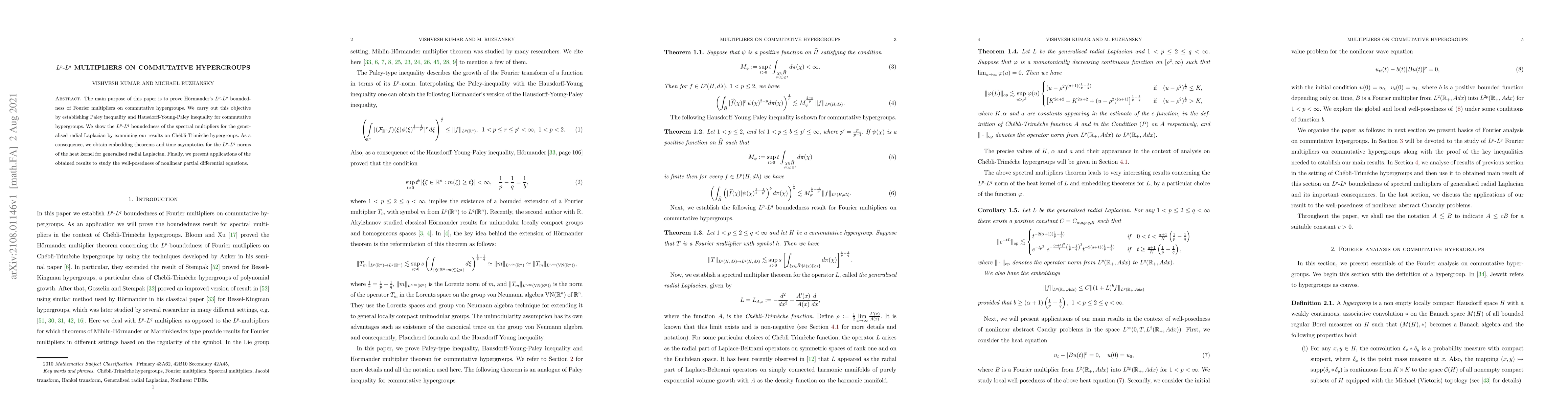 The main purpose of this paper is to prove H\"ormander's $L^p$-$L^q$ boundedness of Fourier multipliers on commutative hypergroups. We carry out this objective by establishing Paley inequality and Hausdorff-Young-Paley inequality for commutative hypergroups. We show the $L^p$-$L^q$ boundedness of the spectral multipliers for the generalised radial Laplacian by examining our results on Ch\'{e}bli-Trim\`{e}che hypergroups. As a consequence, we obtain embedding theorems and time asymptotics for the $L^p$-$L^q$ norms of the heat kernel for generalised radial Laplacian. Finally, we present applications of the obtained results to study the well-posedness of nonlinear partial differential equations.