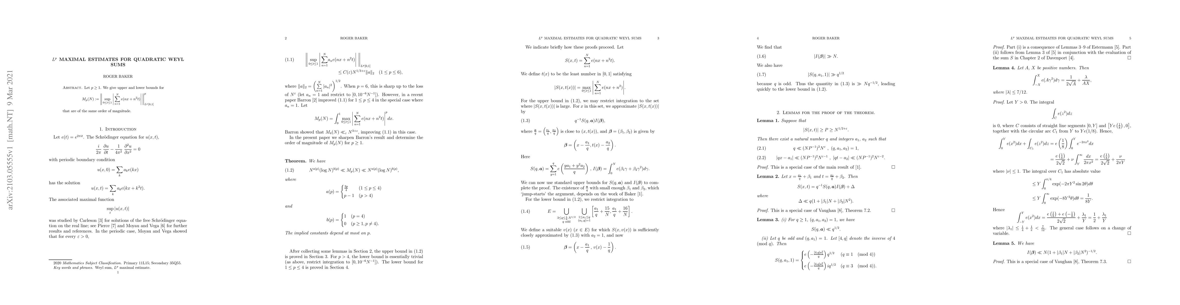 This paper provides upper and lower bounds of the same order for the $L^p$ norm of the Weyl sum $S(x,t)$ associated with the polynomial $xn + tn^2$, where $t = t(x)$ maximizes $|S(x,t)|$. The results establish the asymptotic behavior of these maximal estimates.
