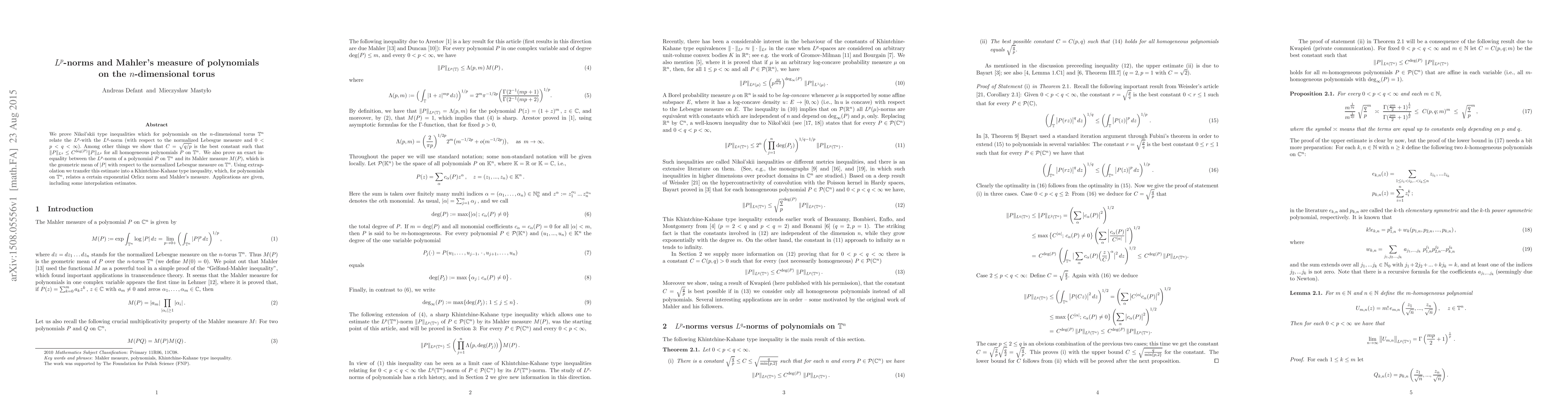 This paper establishes Nikol'skii type inequalities for polynomials on the $n$-dimensional torus $\mathbb{T}^n$, showing that $C=\sqrt{q/p}$ is the optimal constant for relating $L^p$ and $L^q$ norms. It also proves an exact inequality between the $L^p$ norm and Mahler's measure of polynomials, and extends this to a Khintchine-Kahane type inequality involving an exponential Orlicz norm.