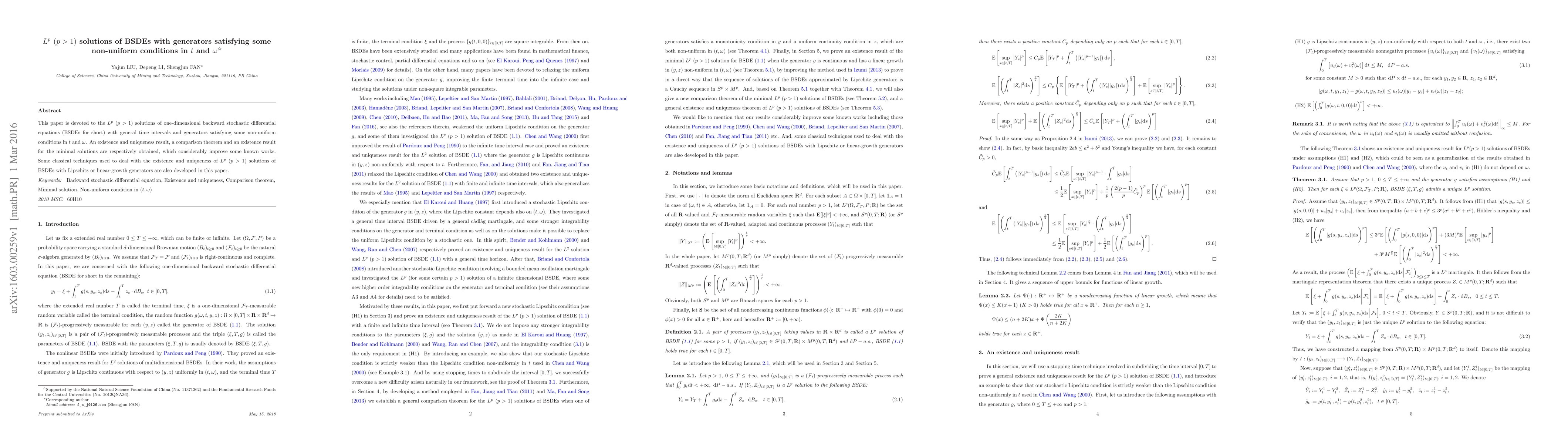 This paper investigates $L^p$ ($p>1$) solutions for one-dimensional BSDEs with non-uniform conditions in time and space. It establishes existence, uniqueness, a comparison theorem, and results for minimal solutions, enhancing previous works and developing new techniques for non-Lipschitz generators.