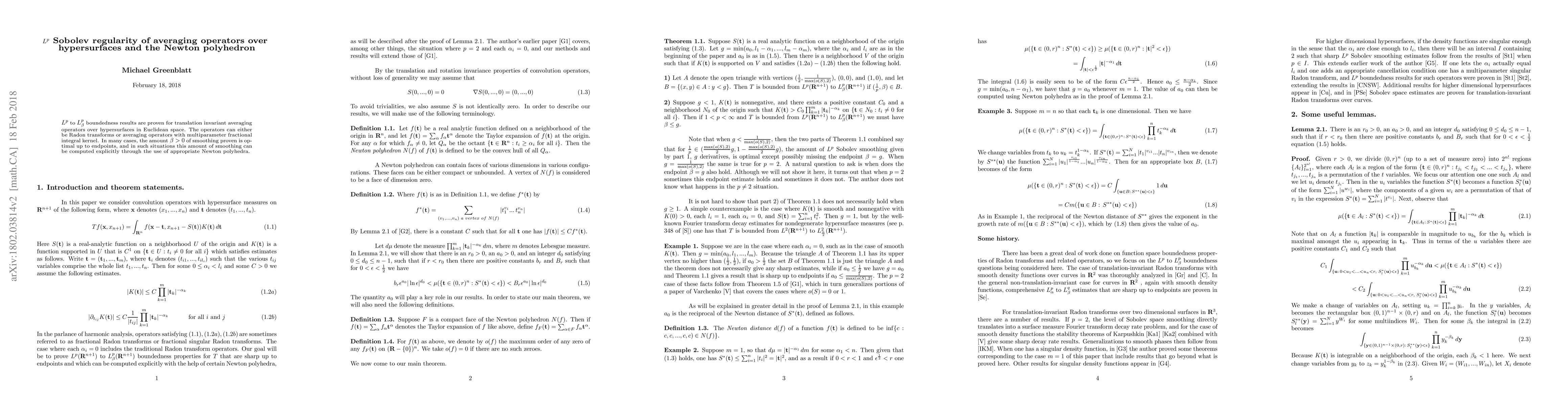 The paper proves $L^p$ to $L^p_{eta}$ boundedness theorems for averaging operators over hypersurfaces in Euclidean space, showing optimal smoothing in many cases with explicit computation through Newton polyhedra.