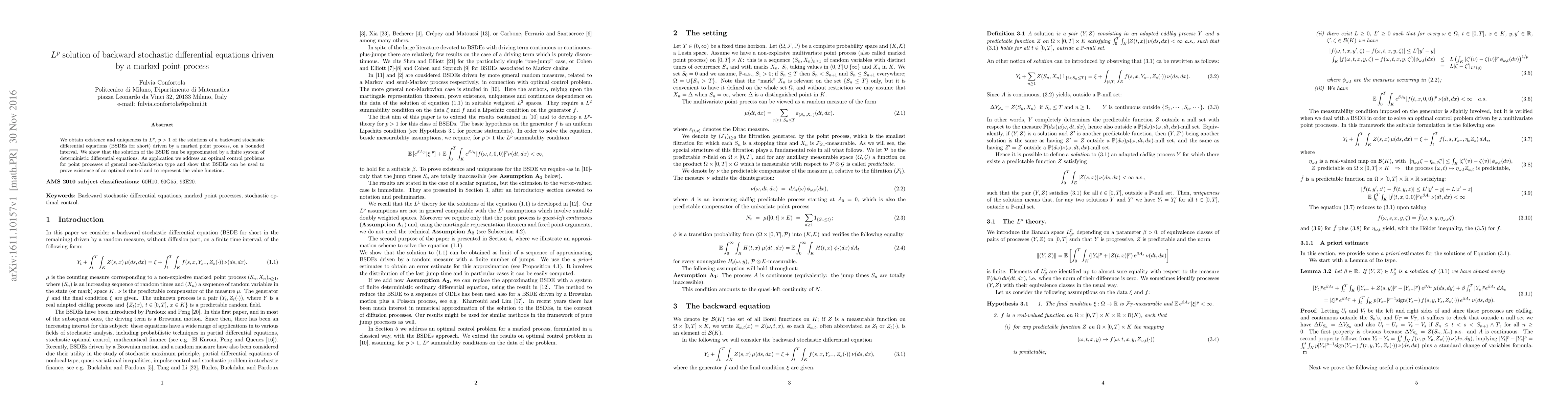 This paper establishes the existence and uniqueness of $L^p$ solutions for backward stochastic differential equations driven by marked point processes, demonstrating their approximation via deterministic differential equations. It also applies these results to optimal control problems for non-Markovian point processes, proving the existence of optimal control and representing the value function.