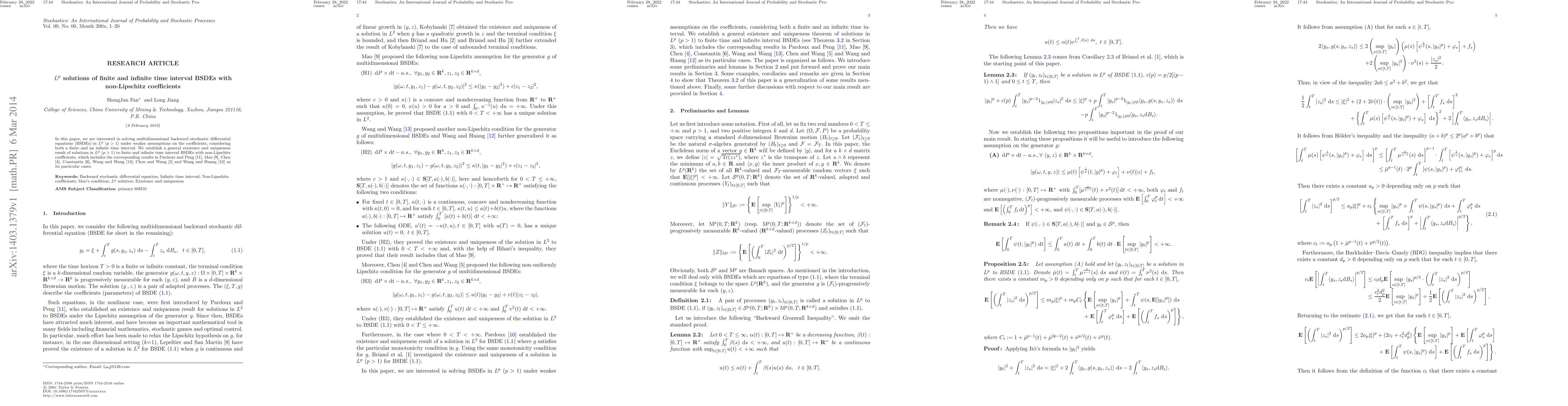 This paper addresses the existence and uniqueness of $L^p$ solutions for multidimensional BSDEs over both finite and infinite time intervals, under weaker conditions on the coefficients than previously required. It generalizes results from earlier studies by incorporating non-Lipschitz coefficients.