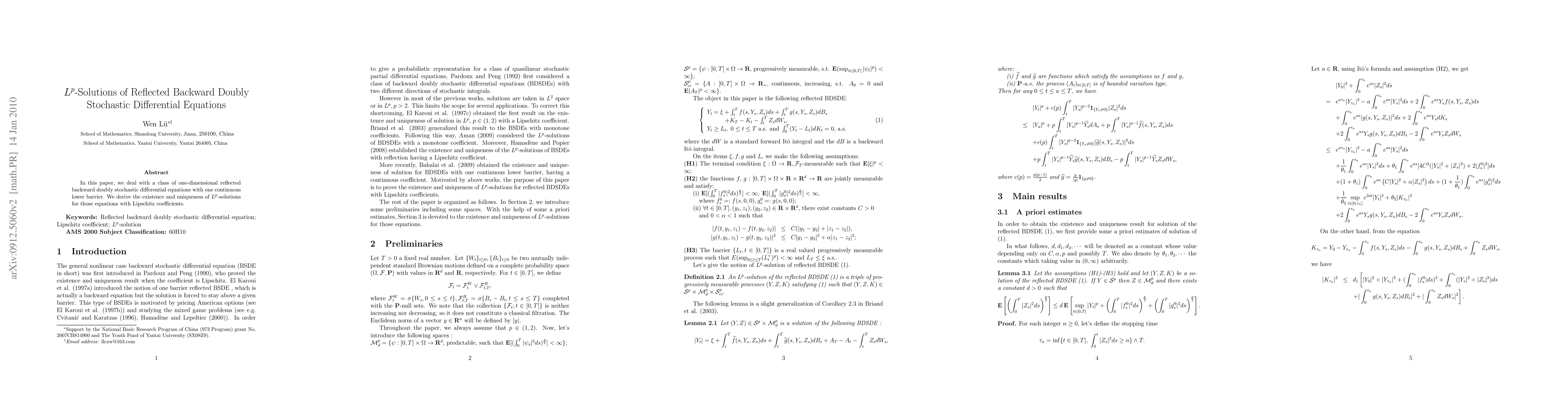 Summary: This paper investigates one-dimensional reflected backward doubly stochastic differential equations with a continuous lower barrier, proving the existence and uniqueness of $L^p$-solutions under Lipschitz conditions.