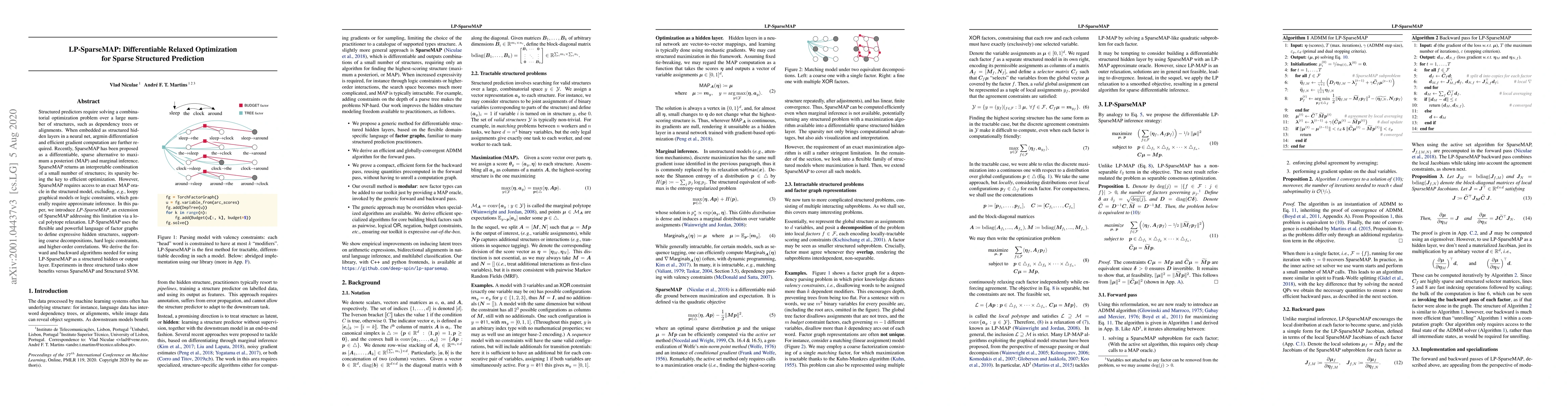 This paper introduces LP-SparseMAP, an extension of SparseMAP that employs local polytope relaxation to handle complex, non-tractable inference problems in structured prediction, enabling the use of factor graphs with logic constraints and higher-order correlations. Experiments demonstrate improved performance over SparseMAP and Structured SVM in structured prediction tasks.