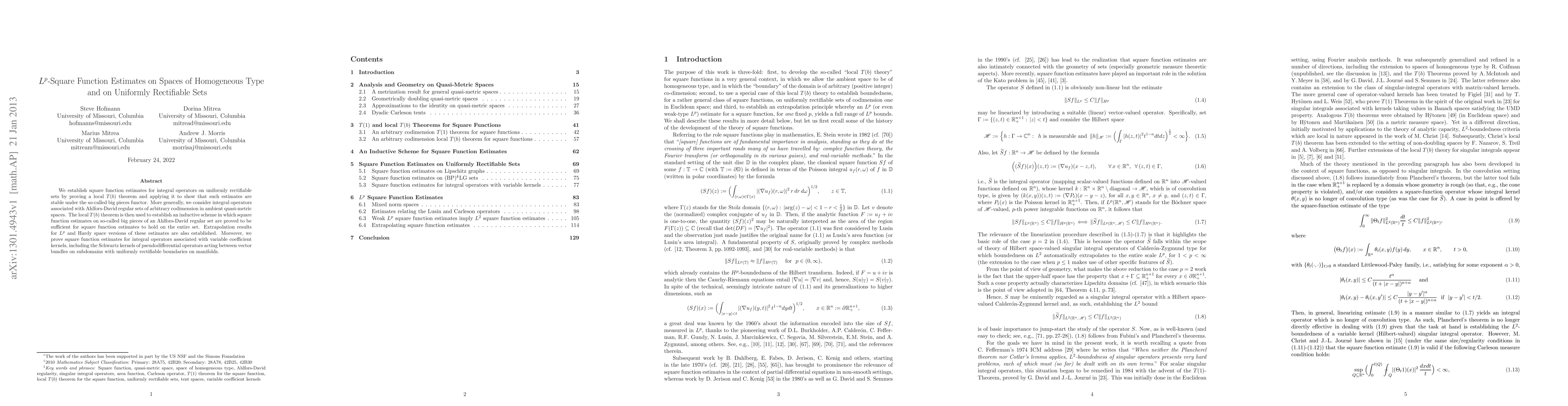 This paper establishes square function estimates for integral operators on uniformly rectifiable sets using a local $T(b)$ theorem, proving stability under the big pieces functor. It also extends these estimates to Ahlfors-David regular sets in quasi-metric spaces and includes variable coefficient kernels, with extrapolation results for $L^p$ and Hardy spaces.