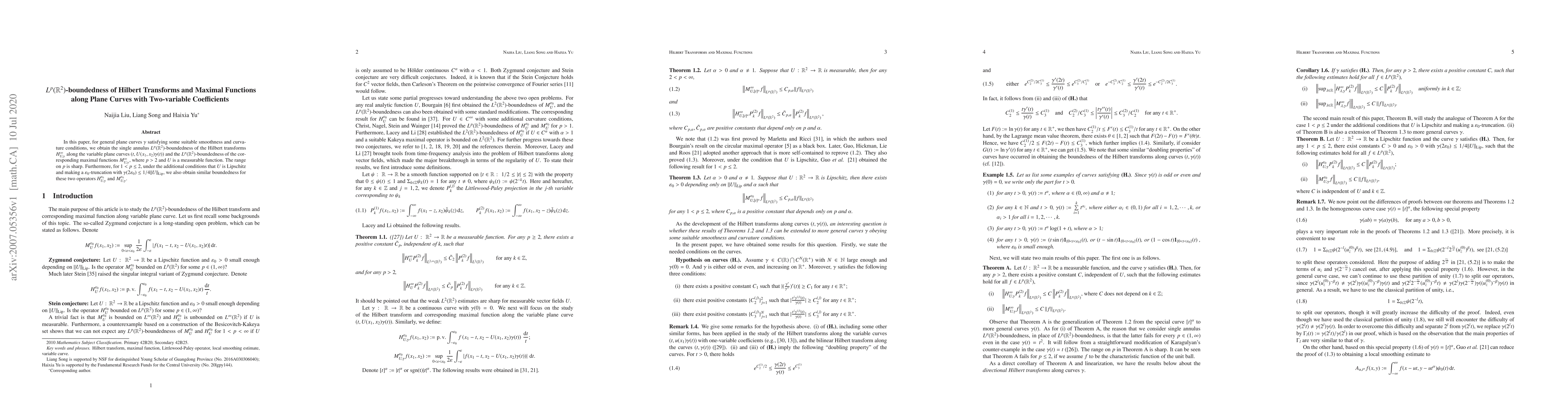 This paper establishes $L^p(\mathbb{R}^2)$-boundedness for Hilbert transforms and corresponding maximal functions along smooth plane curves with variable coefficients, proving sharp results for $p>2$ and additional conditions for $1<p\leq 2$.