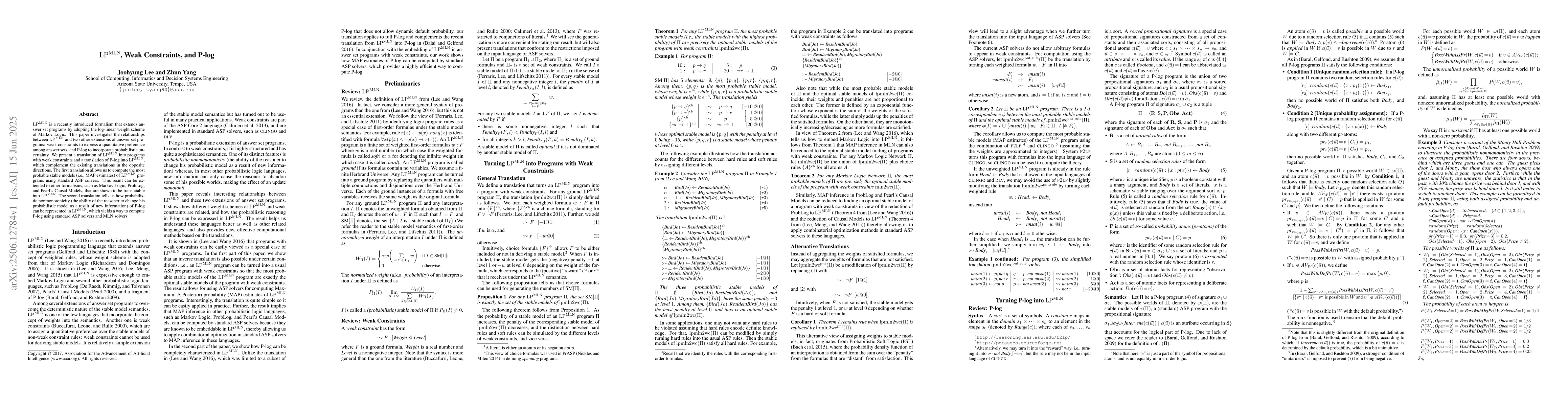 LPMLN is a recently introduced formalism that extends answer set programs by adopting the log-linear weight scheme of Markov Logic. This paper investigates the relationships between LPMLN and two other extensions of answer set programs: weak constraints to express a quantitative preference among answer sets, and P-log to incorporate probabilistic uncertainty. We present a translation of LPMLN into programs with weak constraints and a translation of P-log into LPMLN, which complement the existing translations in the opposite directions. The first translation allows us to compute the most probable stable models (i.e., MAP estimates) of LPMLN programs using standard ASP solvers. This result can be extended to other formalisms, such as Markov Logic, ProbLog, and Pearl's Causal Models, that are shown to be translatable into LPMLN. The second translation tells us how probabilistic nonmonotonicity (the ability of the reasoner to change his probabilistic model as a result of new information) of P-log can be represented in LPMLN, which yields a way to compute P-log using standard ASP solvers and MLN solvers.