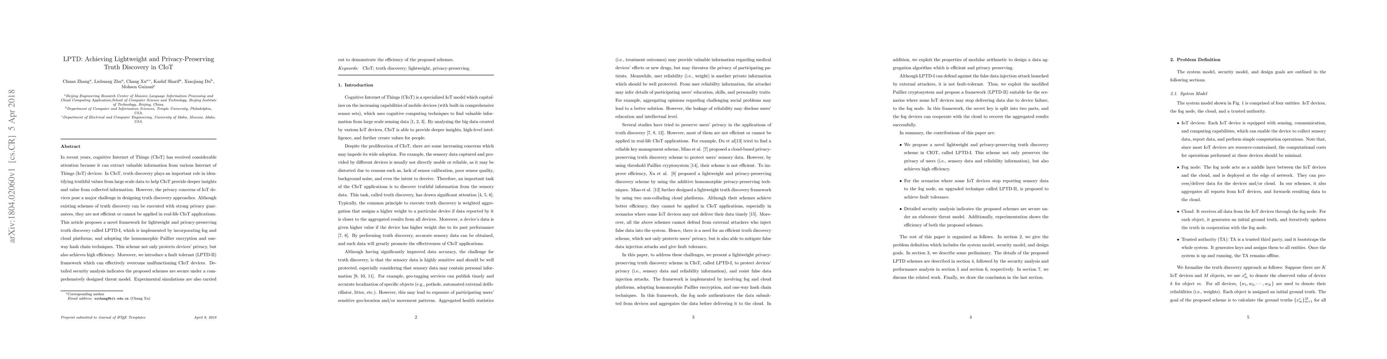 A new framework called LPTD-I offers lightweight and privacy-preserving truth discovery in Cognitive Internet of Things (CIoT), protecting device privacy while achieving high efficiency. The proposed scheme also includes a fault-tolerant version to handle malfunctioning devices, ensuring secure and reliable operation.