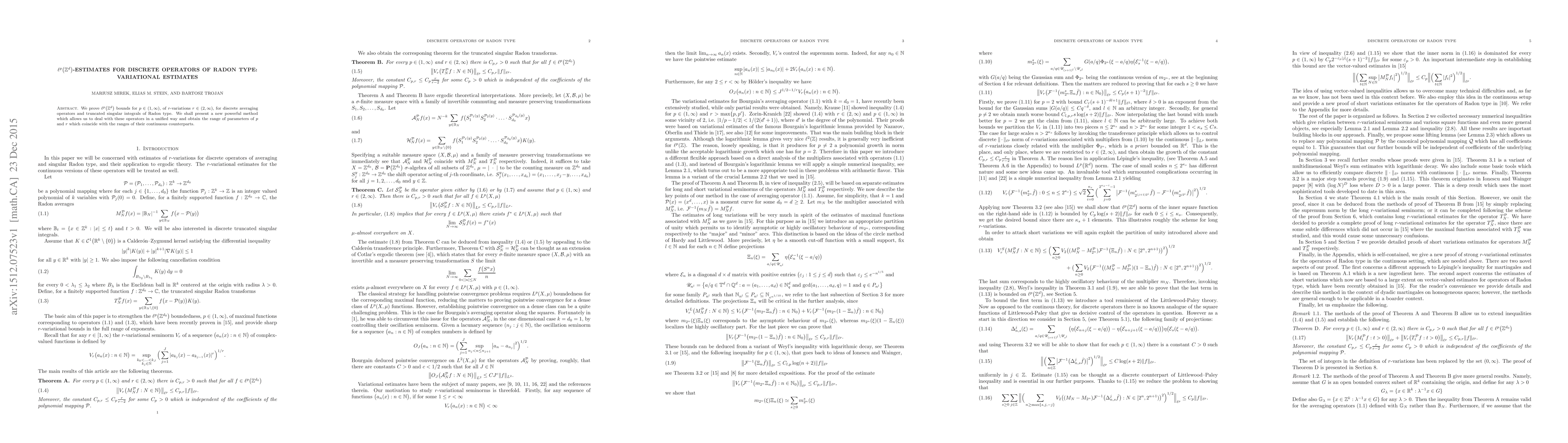 This paper establishes $\ell^p(\mathbb{Z}^d)$ bounds for $p\in(1, \infty)$ and $r$-variations $r\in(2, \infty)$ for discrete operators, including averaging operators and truncated singular integrals of Radon type. The authors introduce a novel method to unify the analysis of these operators, achieving parameter ranges that match their continuous counterparts.