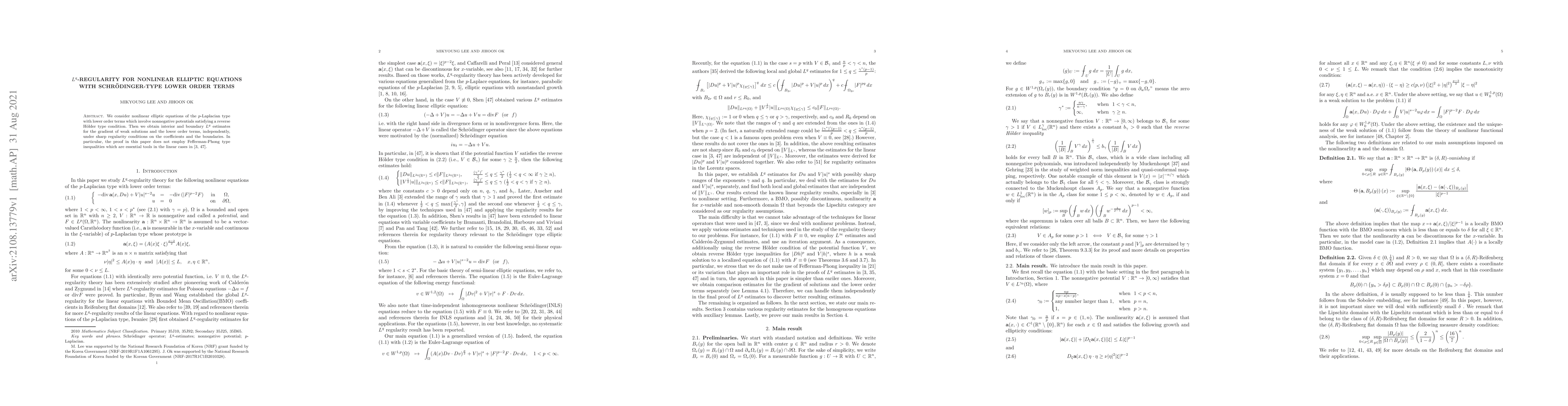 Researchers developed $L^q$-regularity estimates for nonlinear elliptic equations with Schr"odinger-type lower order terms, improving upon existing methods in linear cases.