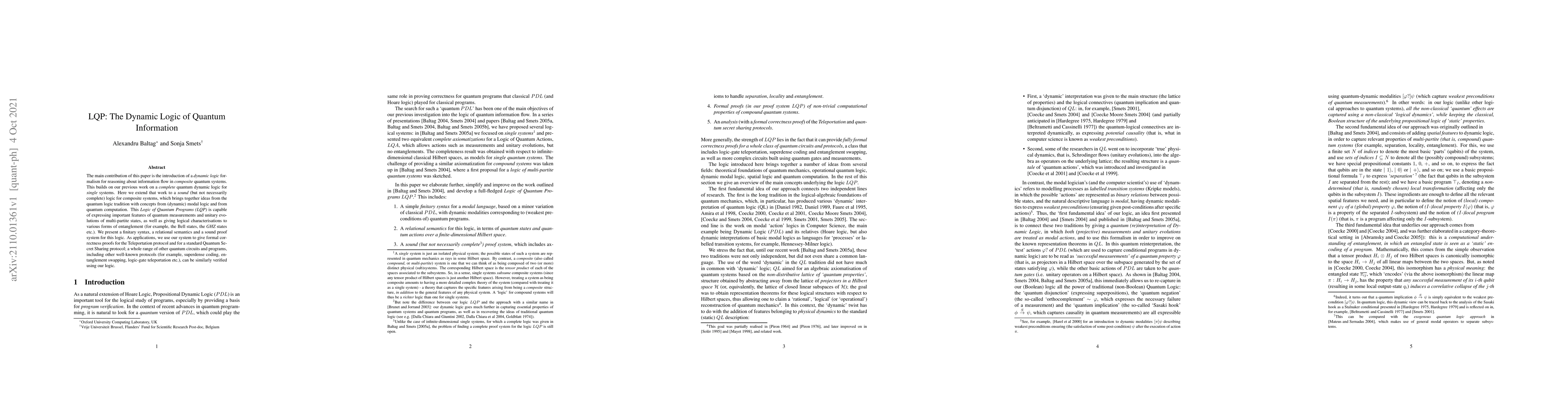This paper introduces the Logic of Quantum Programs (LQP), a dynamic logic formalism for reasoning about information flow in composite quantum systems, extending previous work on quantum dynamic logic for single systems. The LQP combines quantum logic, modal logic, and quantum computation to characterize quantum measurements and entanglement, and provides formal correctness proofs for quantum protocols like teleportation and quantum secret sharing.