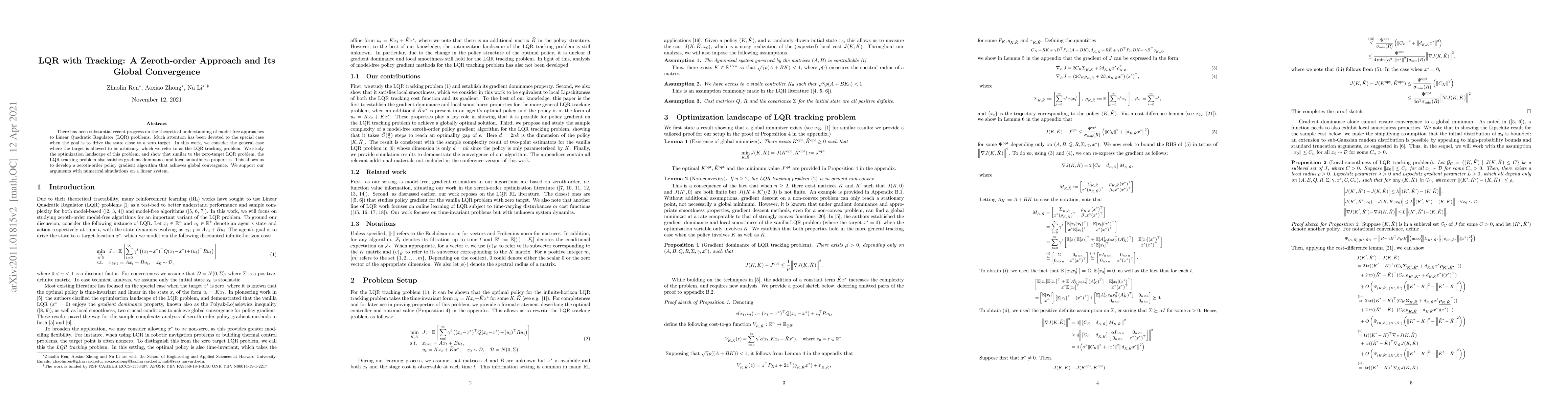 A new algorithm for Linear Quadratic Regulator (LQR) problems with an arbitrary target is presented, achieving global convergence through zeroth-order policy gradient optimization.
