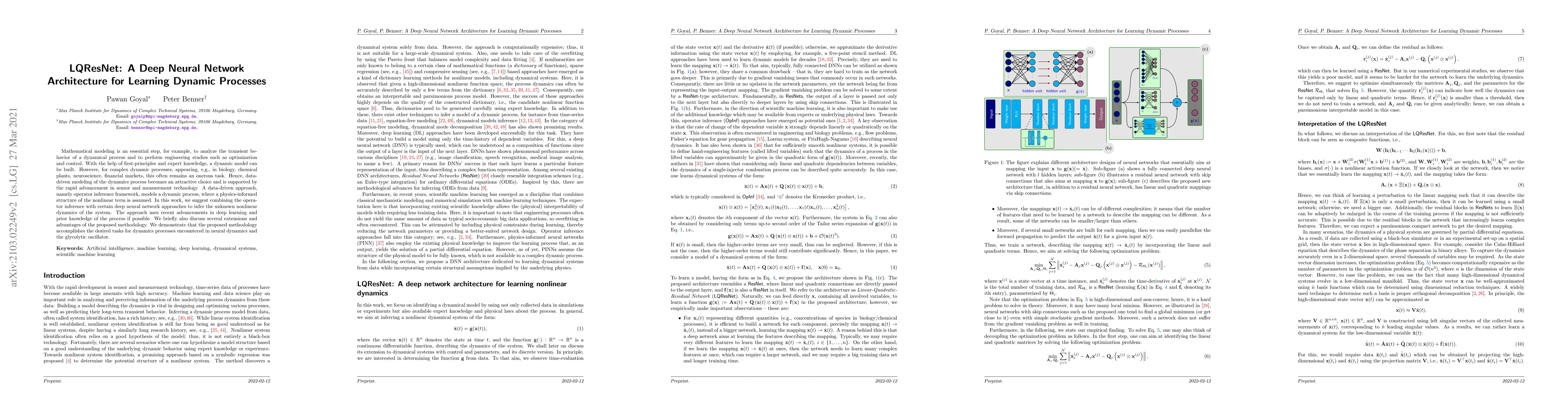 LQResNet combines deep neural networks with operator inference to model complex dynamic processes, leveraging advancements in deep learning and prior knowledge. The methodology effectively models neural dynamics and the glycolytic oscillator, demonstrating its potential for various applications.