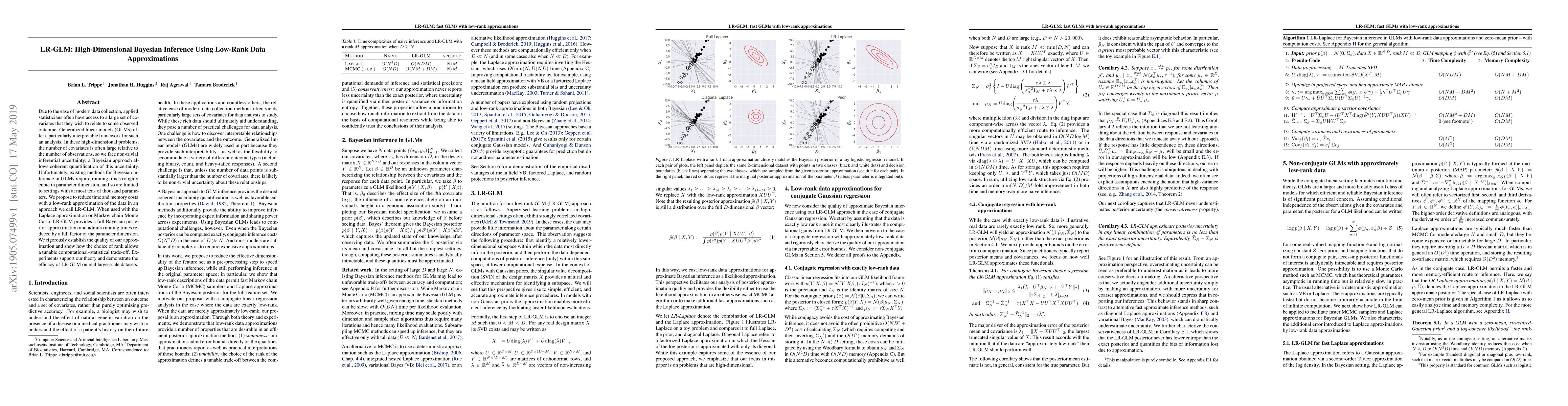 The paper introduces LR-GLM, a method for high-dimensional Bayesian inference using low-rank data approximations, which significantly reduces computational costs compared to traditional methods. The approach enables efficient Bayesian posterior approximations in settings with many covariates, balancing computational efficiency and statistical accuracy.
