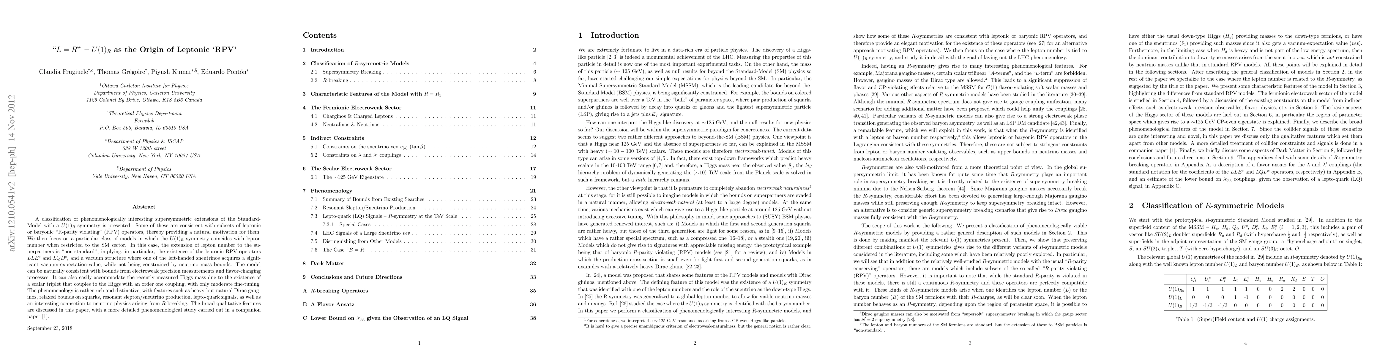 A classification of phenomenologically interesting supersymmetric extensions of the Standard-Model with a $U(1)_R$ symmetry is presented. Some of these are consistent with subsets of leptonic or baryonic "R-parity violating" (RPV) operators, thereby providing a natural motivation for them. We then focus on a particular class of models in which the $U(1)_R$ symmetry coincides with lepton number when restricted to the SM sector. In this case, the extension of lepton number to the superpartners is "non-standard", implying, in particular, the existence of the leptonic RPV operators $LLE^c$ and $LQD^c$, and a vacuum structure where one of the left-handed sneutrinos acquires a significant vacuum-expectation-value, while not being constrained by neutrino mass bounds. The model can be naturally consistent with bounds from electroweak precision measurements and flavor-changing processes. It can also easily accommodate the recently measured Higgs mass due to the existence of a scalar triplet that couples to the Higgs with an order one coupling, with only moderate fine-tuning. The phenomenology is rather rich and distinctive, with features such as heavy-but-natural Dirac gauginos, relaxed bounds on squarks, resonant slepton/sneutrino production, lepto-quark signals, as well as an interesting connection to neutrino physics arising from R-breaking. The broad qualitative features are discussed in this paper, with a more detailed phenomenological study carried out in a companion paper Frugiuele et al. (2012).