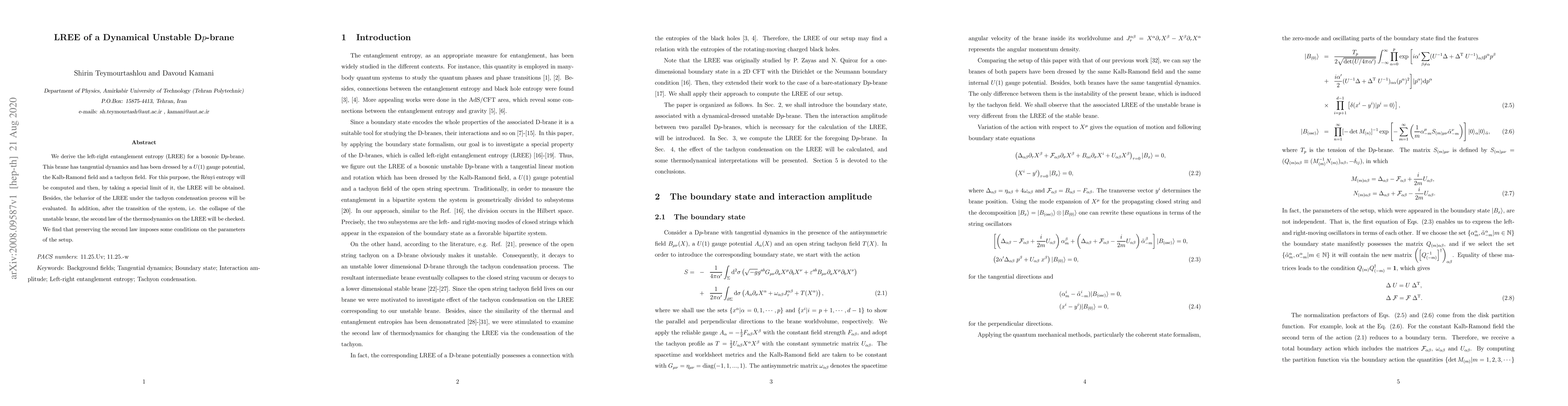 Researchers derived a formula for left-right entanglement entropy of a dynamic unstable Dp-brane, exploring its behavior under conditions like tachyon condensation and thermodynamic constraints.