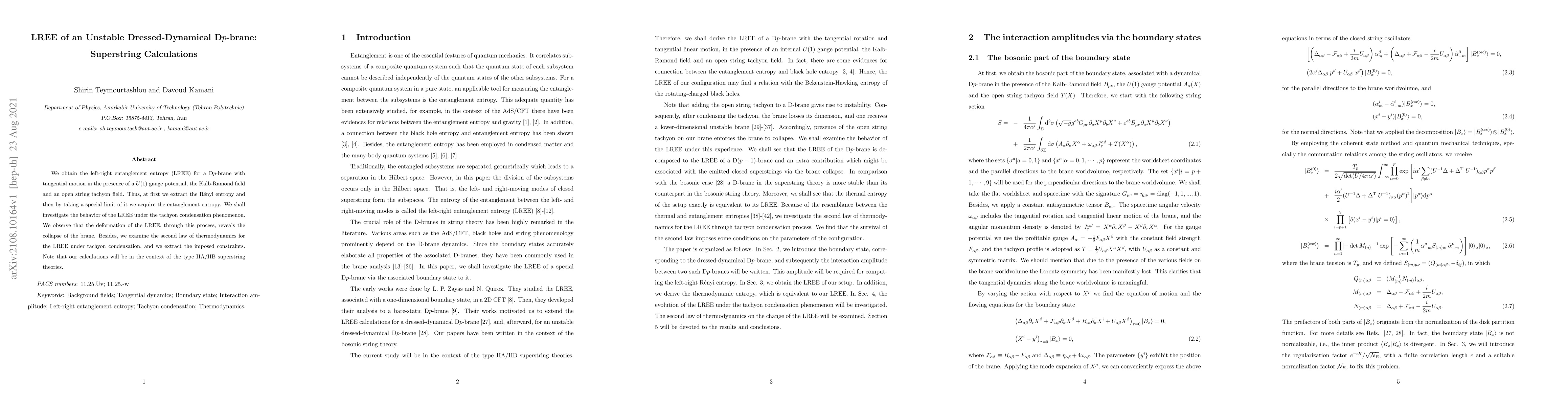 Researchers calculated left-right entanglement entropy for a moving Dp-brane in superstring theories, finding its behavior changes under tachyon condensation, revealing the brane's collapse.