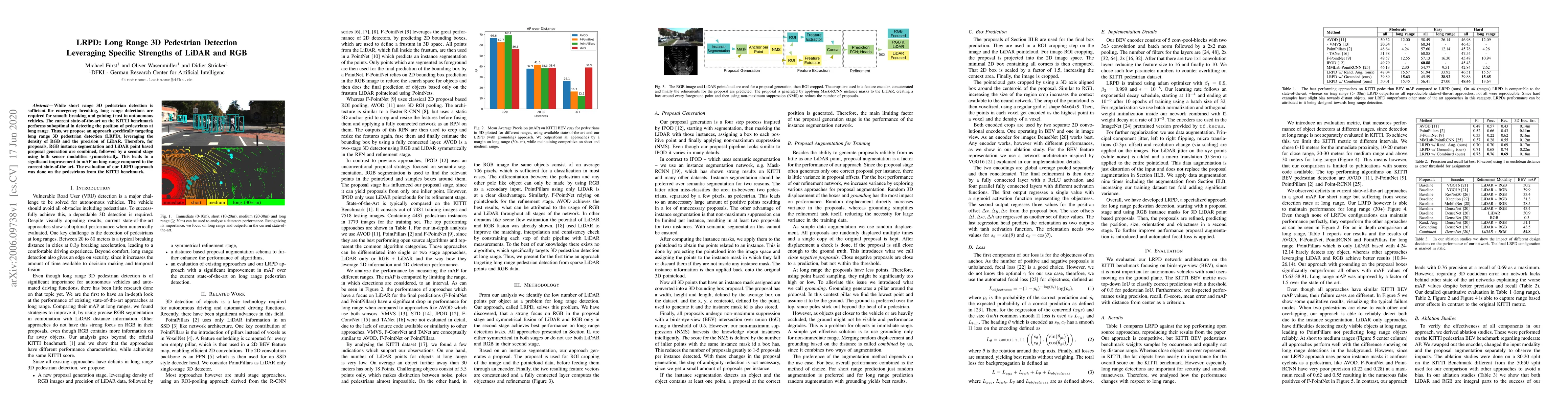 This paper proposes LRPD, a long range 3D pedestrian detection method that combines the strengths of RGB and LiDAR data. The approach uses RGB for instance segmentation and LiDAR for precise proposal generation, followed by a dual-modality refinement stage, achieving better performance on long-range detections compared to existing methods on the KITTI benchmark.