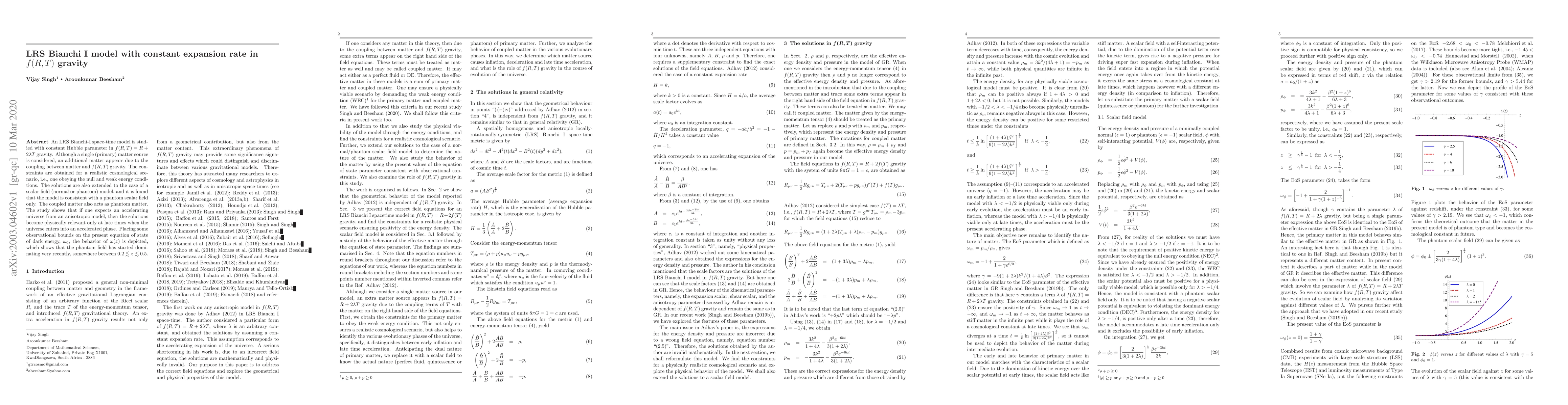 This paper investigates an LRS Bianchi I model in $f(R,T)$ gravity with a constant Hubble parameter, revealing a secondary matter due to the coupling with the gravity model. The study finds that the model is consistent with a phantom scalar field, suggesting that the universe's accelerated expansion is only physically relevant in its late, accelerated phase.