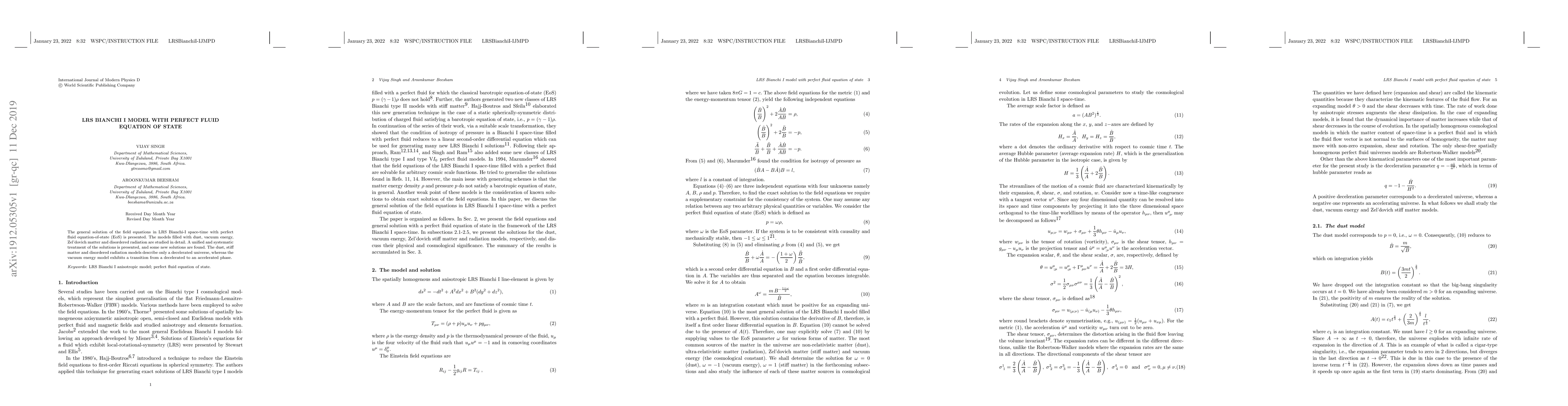 Researchers present a unified solution for LRS Bianchi I space-time with perfect fluid equation of state, finding new solutions and identifying phase transitions in universe evolution.